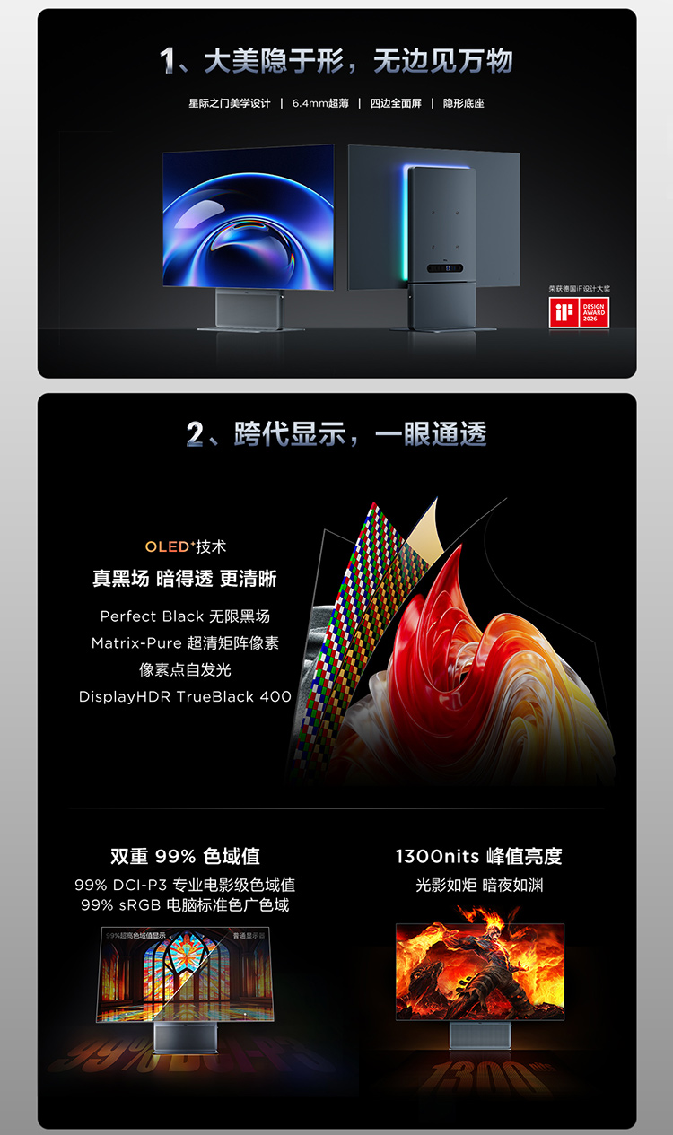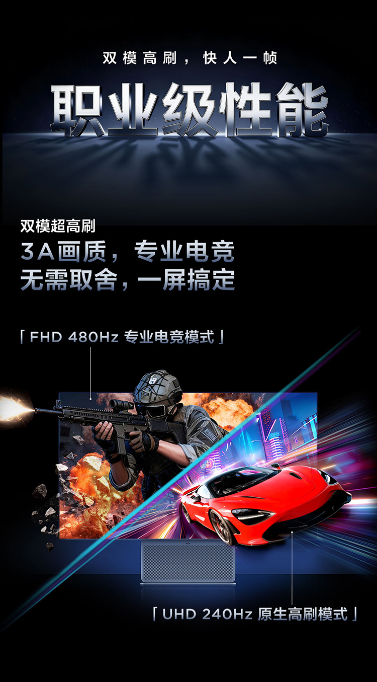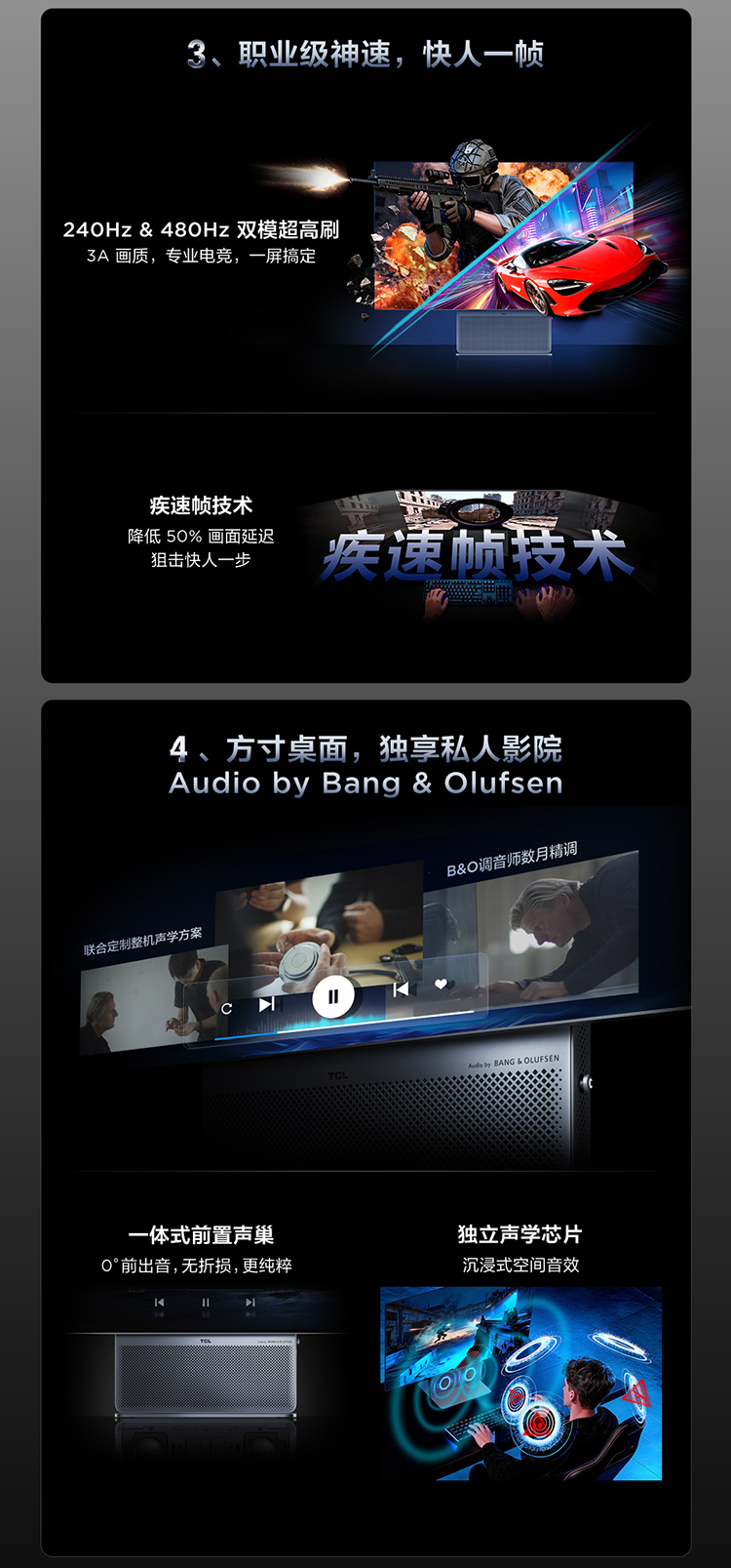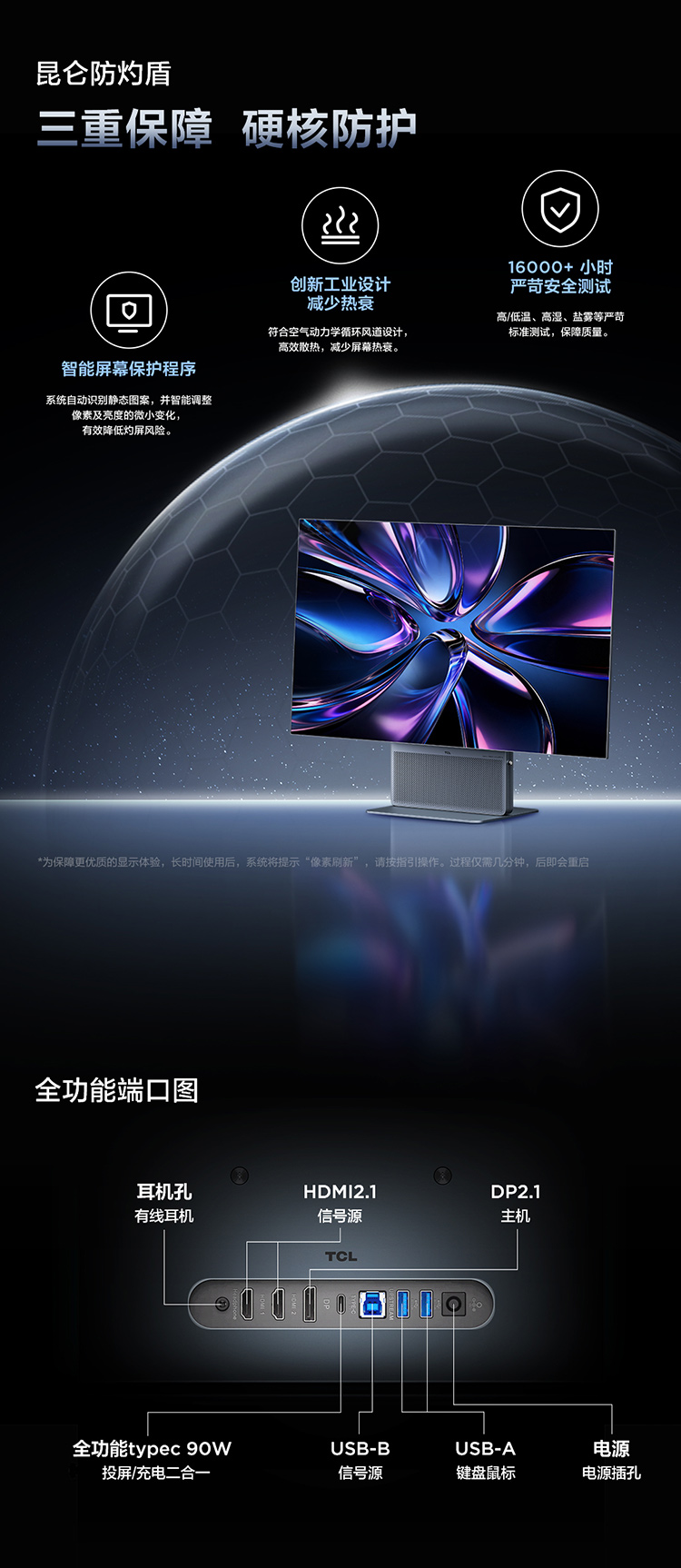 TCL 32英寸 X3A 4K 240Hz FHD 480Hz OLED+ 纯黑超低反 星际之门美学设计显示器 32X3A