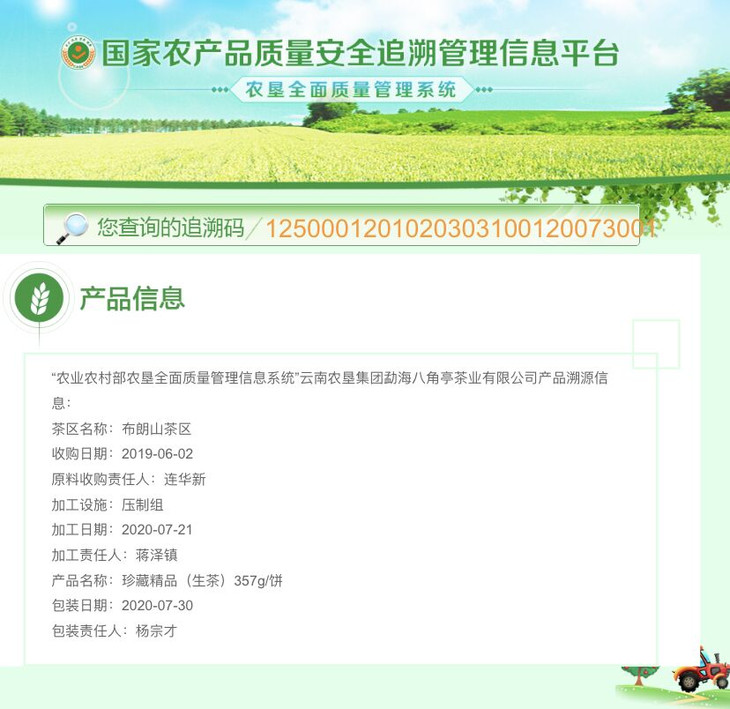 每饼茶均贴有质量追溯码,通过扫码可以查询该产品的相关生产信息,品藏无忧。