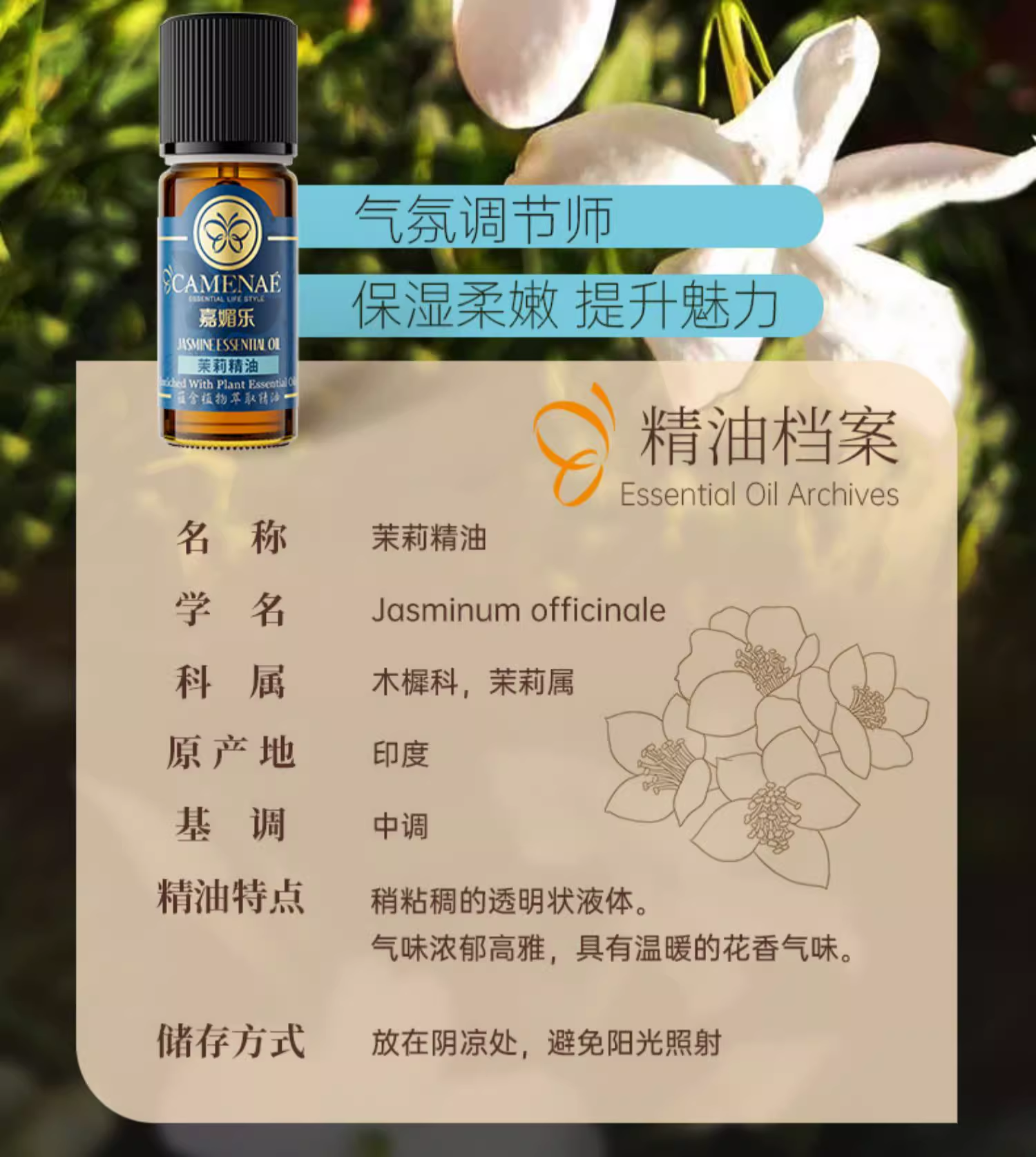 【双12大促】嘉媚乐茉莉单方精油 水润亮泽 补水保湿 均匀嫩肤 家居香薰精油