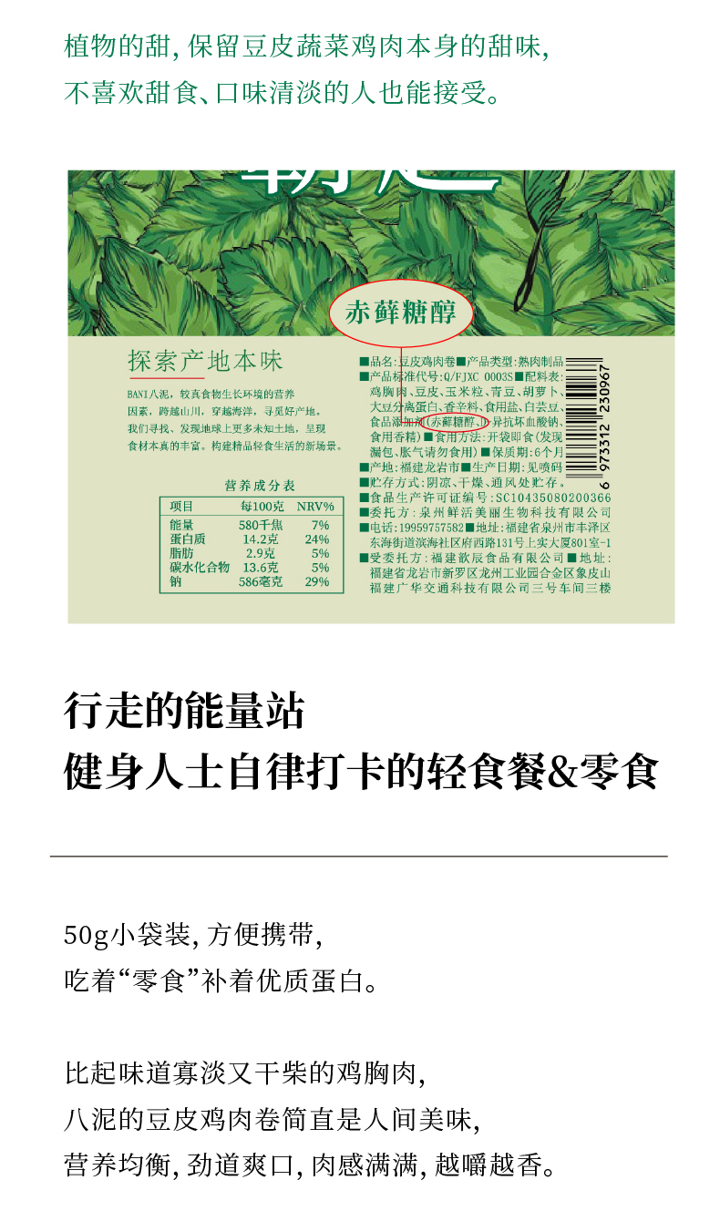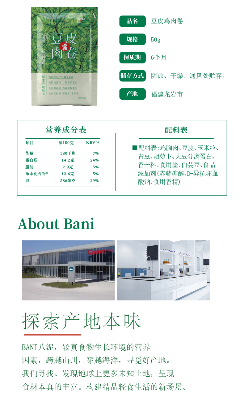八泥丸妃豆皮鸡胸肉卷健身蛋白质开袋即食劲道好吃饱腹代餐高蛋白