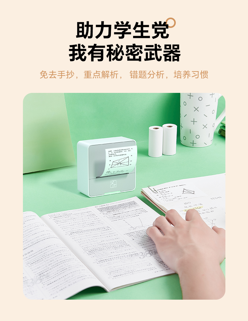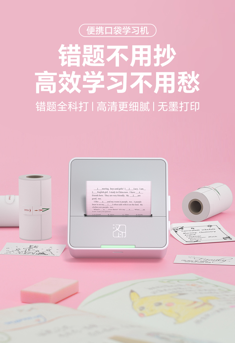 【错题免抄神器】汉印S2错题打印机照片学习迷你小型学生小初高中错题本整理扫描改错口袋家用作业学生用便携