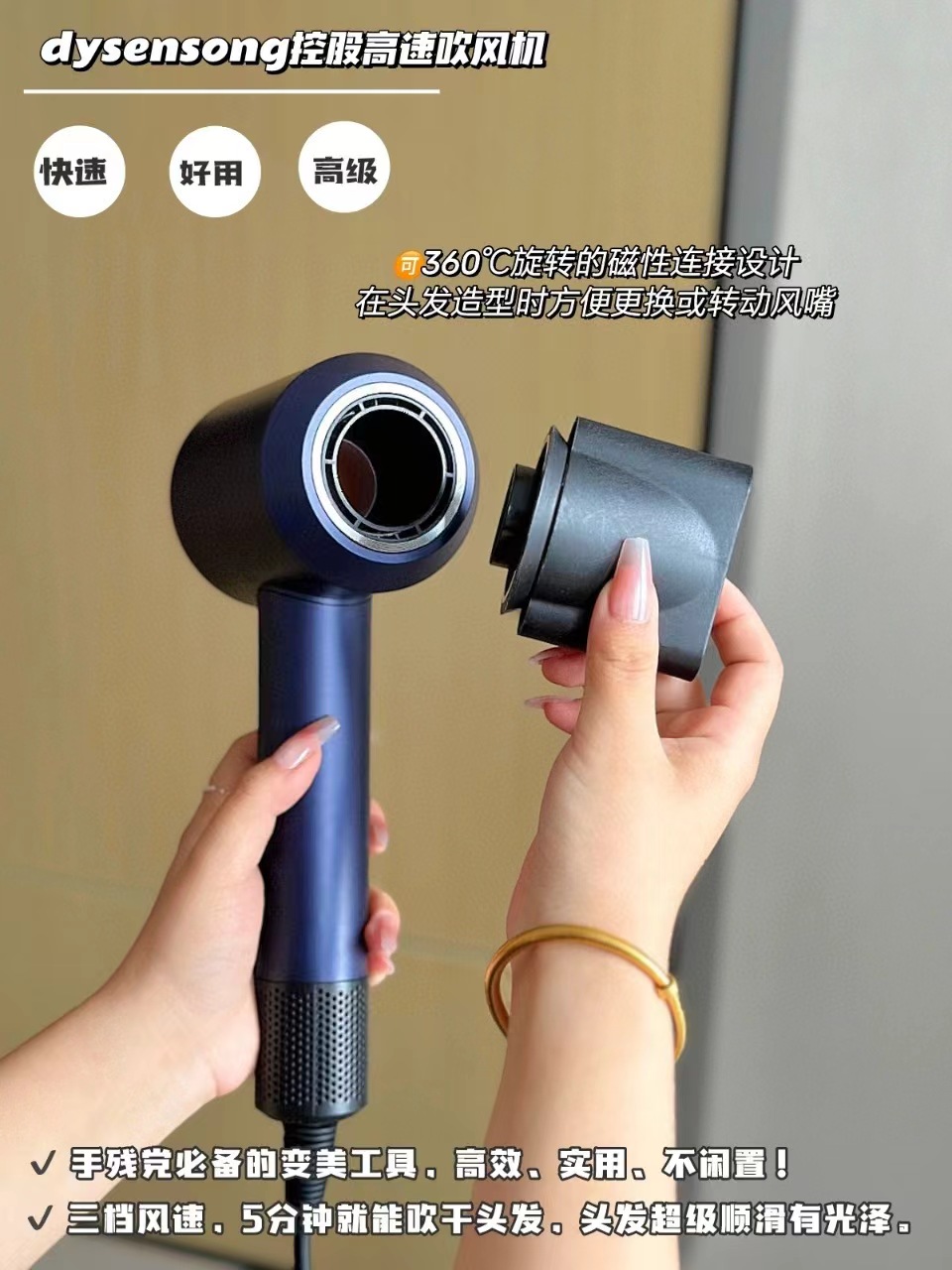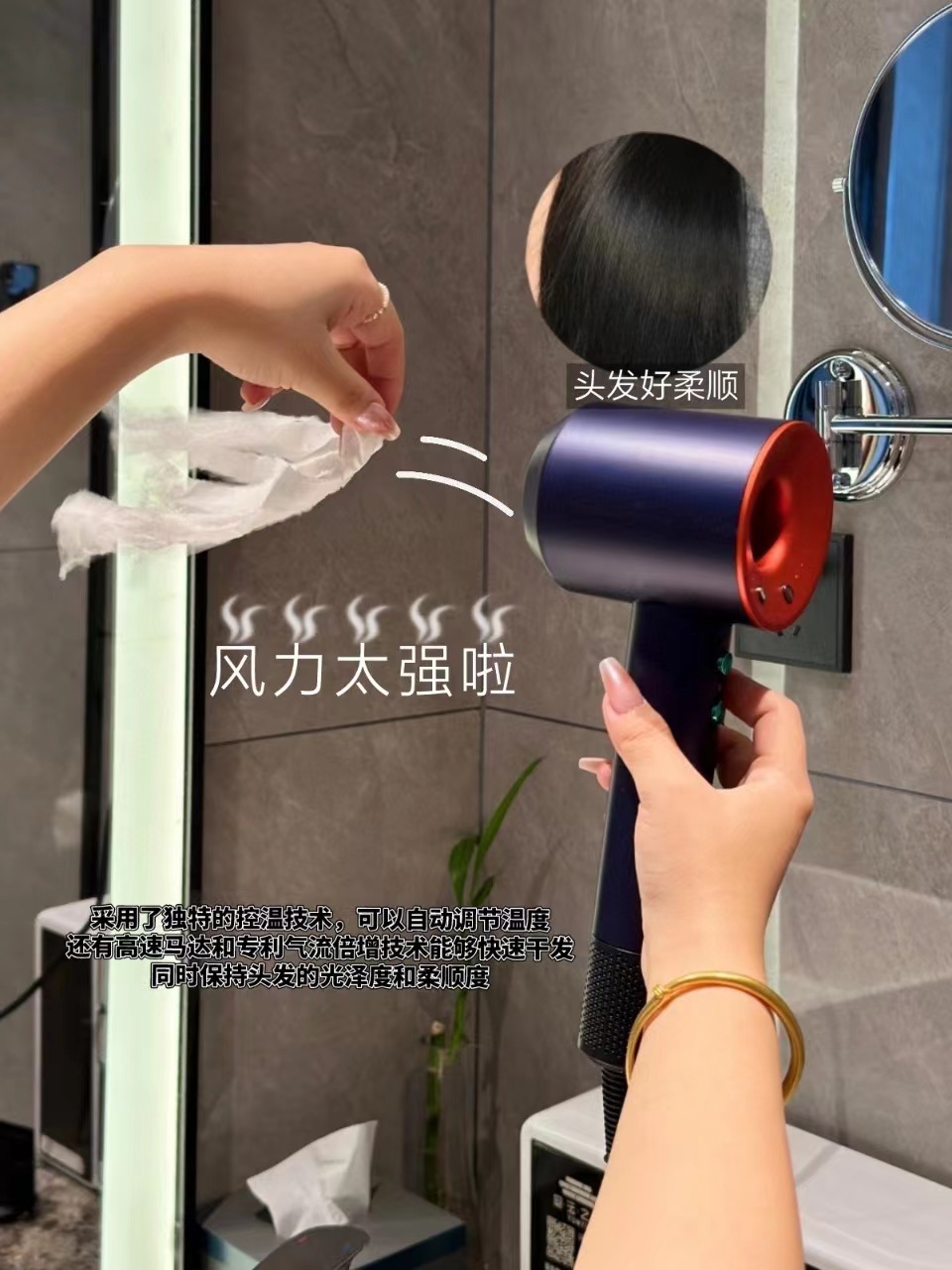 GAO速送风,搭载顺滑风嘴,风力可控,极致温柔,秀发闪亮新生,用它吹完头发,发丝不会干燥枯黄,反而柔软水润,光泽度也不错,长时间用下来,发质肉眼可见在变好。