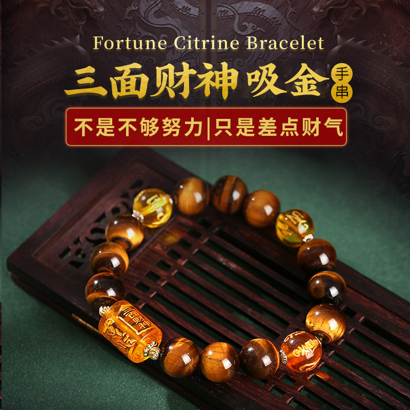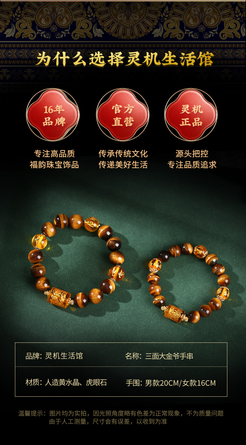 【钱途无忧】灵机生活馆 五路财shen手链水晶朱砂手串金发晶