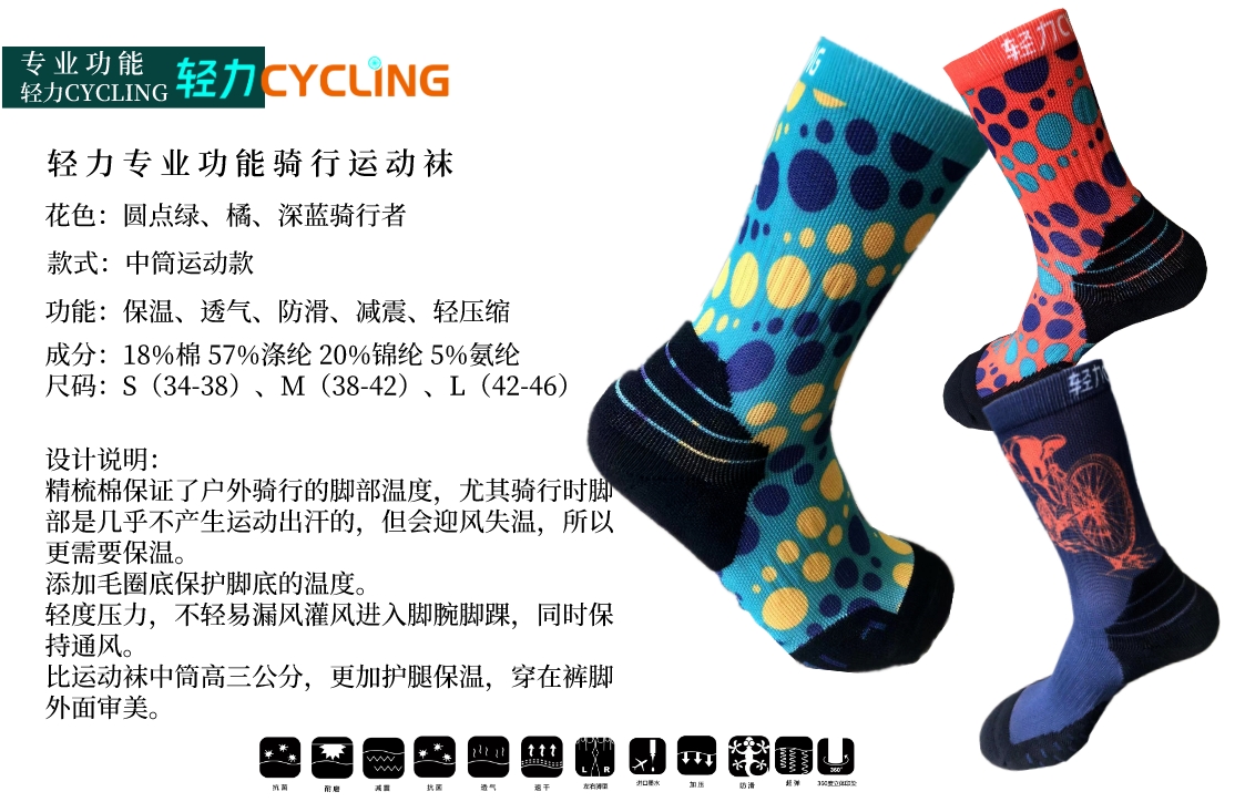 名称:轻力CYCLING专业功能骑行中筒运动袜