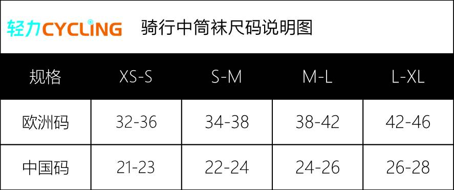 2、骑行袜弹力大,如脚码超过46,也可使用L-XL码。