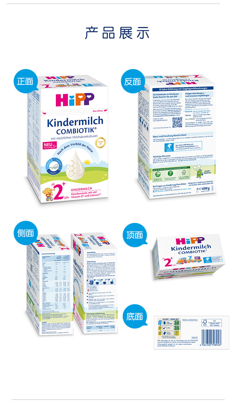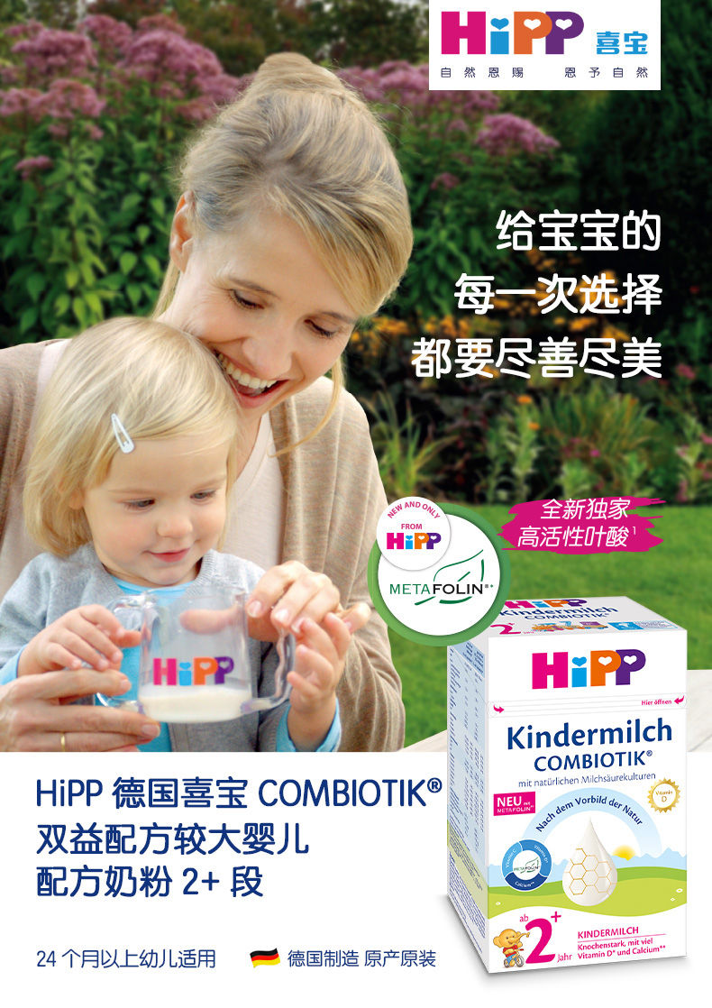 【保税仓】德国喜宝(Hipp)益生菌奶粉 2+段 600g 适合2岁以上(新包装)