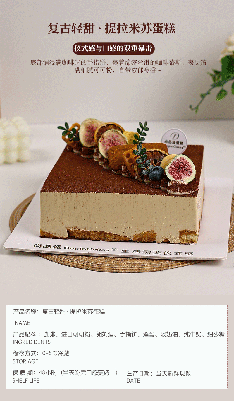 「复古轻甜」精品提拉米苏蛋糕 手指饼底咖啡慕斯 无花果装饰下午茶甜点【惠州】