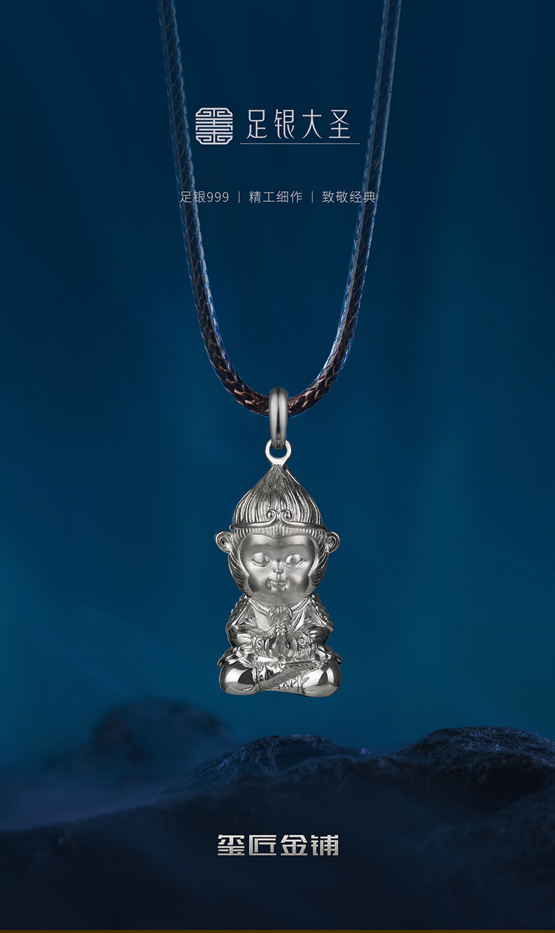 玺匠金铺《足银大圣》孙悟空足银999 佩戴吊坠项链