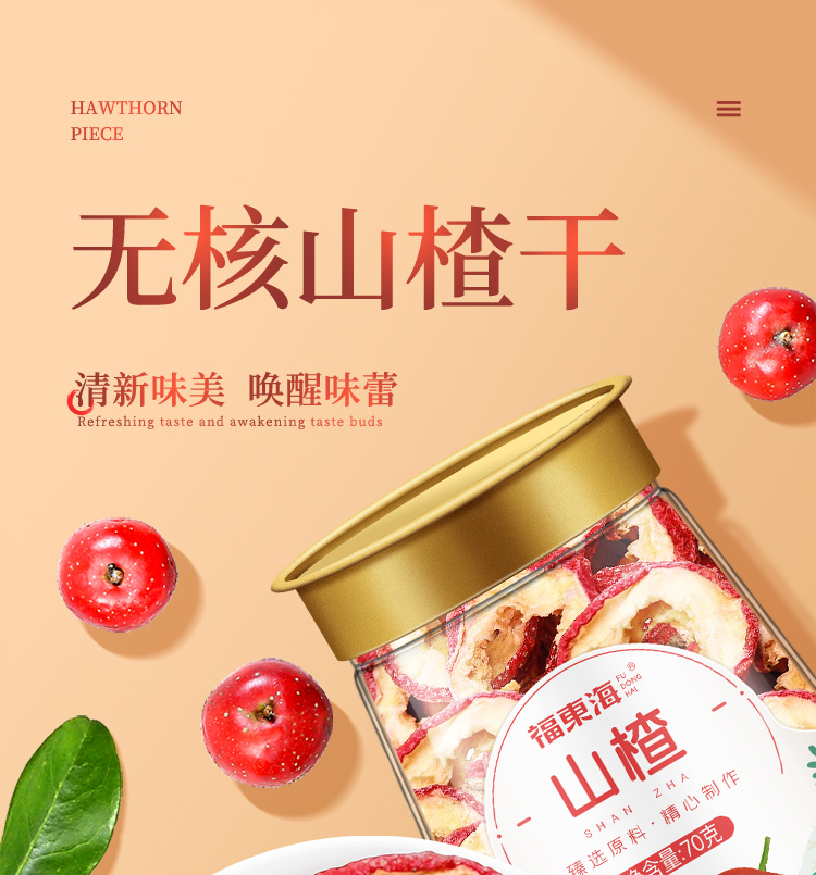 福东海 山楂干70g 精选无核山楂圈山楂切片 无核无籽 泡茶泡水喝