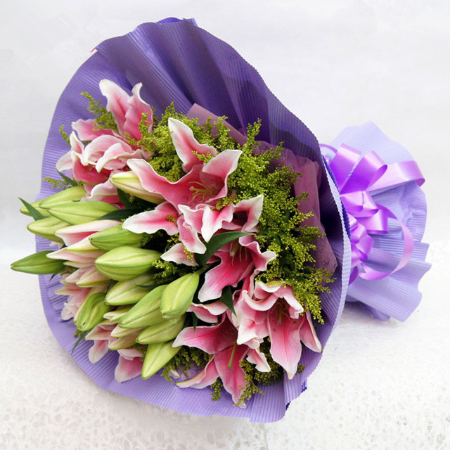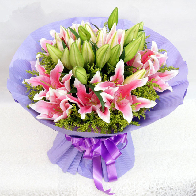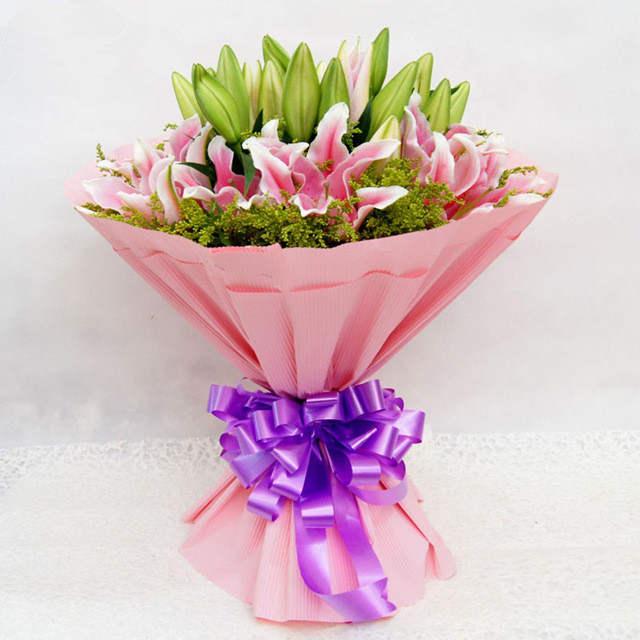 粉色香水百合花束 新款