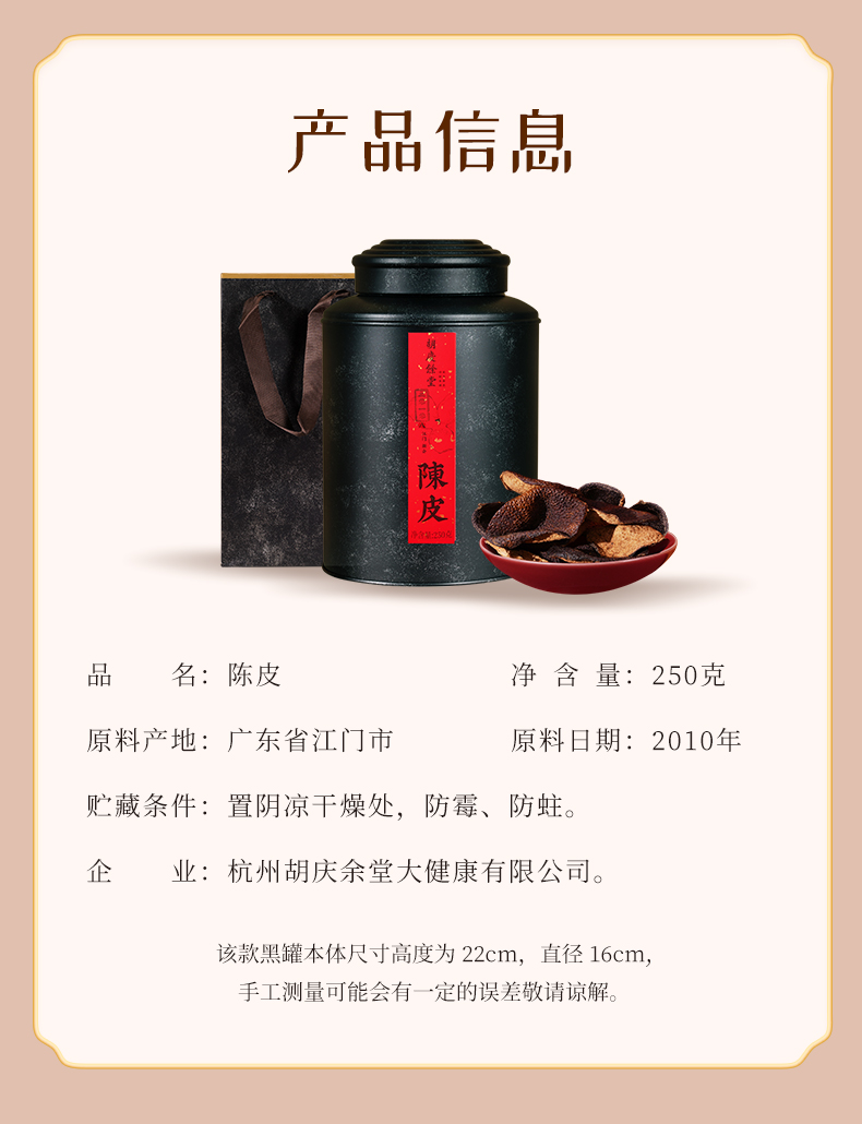 胡庆余堂2010年广东新会江门陈皮礼罐250g