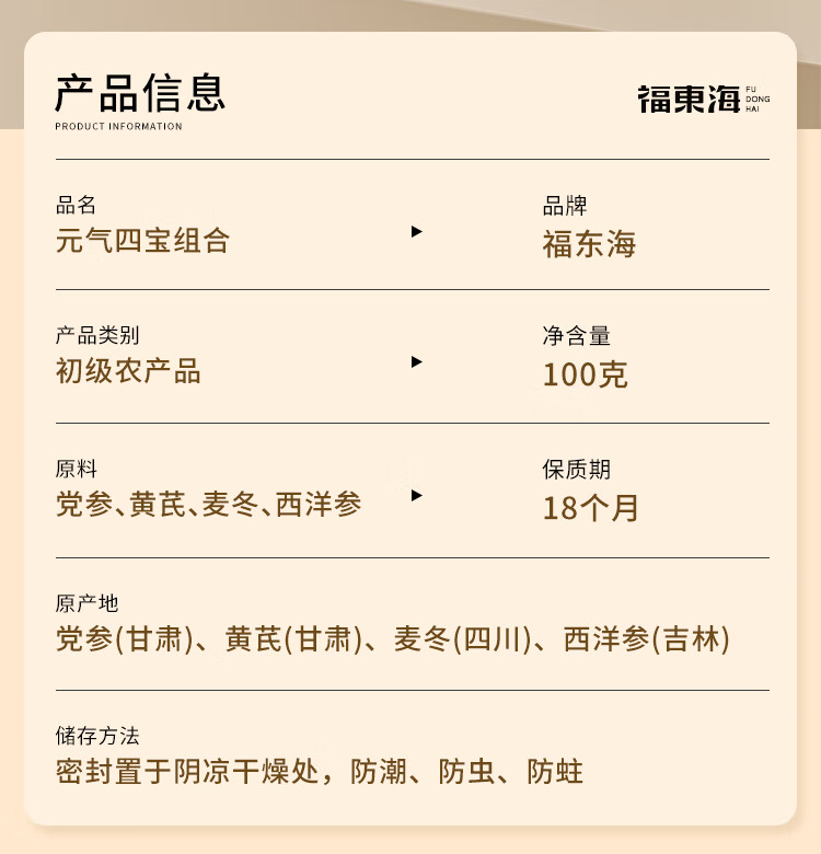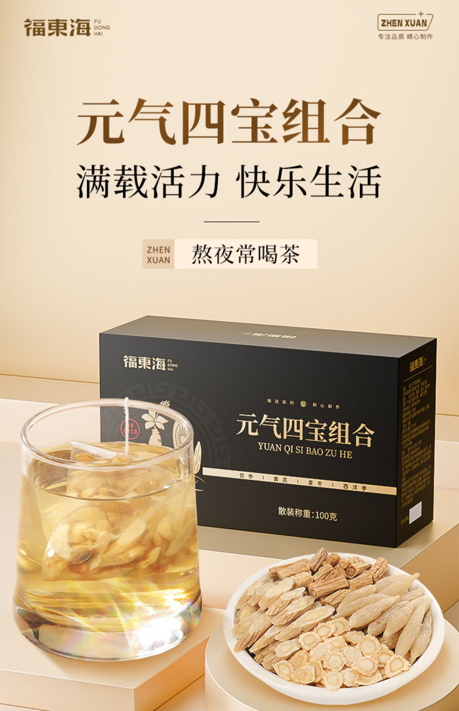 福东海 黄芪党参西洋参麦冬茶100克 黄芪麦冬党参西洋参组合 气泡水养生茶