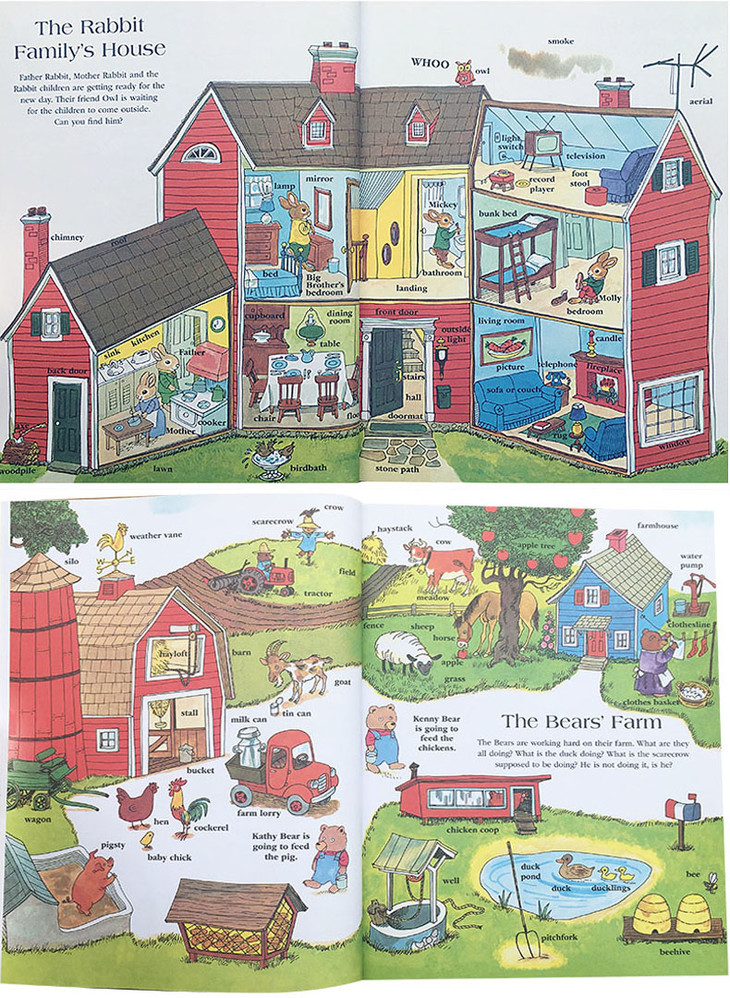 Best Word Book Ever《斯凯瑞:会讲故事的单词书》是一本被号称为英语界很好的识字书的画册。很多年来,它被再版无数次,启蒙了一代代的国外小朋友,里面有超过1400个各种物件和单词。随着社会的进步,该画册的里面也在悄悄的做着很多细微,但又意义重大的变化,比如以前画面中是妈妈在做早餐,但新版中的爸爸也参与做早餐,以前女性的词语变成了中性的表达,对一些职业的形容词也去掉了,以免让小朋友产生错误的刻板印象。这种严谨的与时俱进的编辑思路,大概也就是这本书能成为很好的识字书的原因吧。