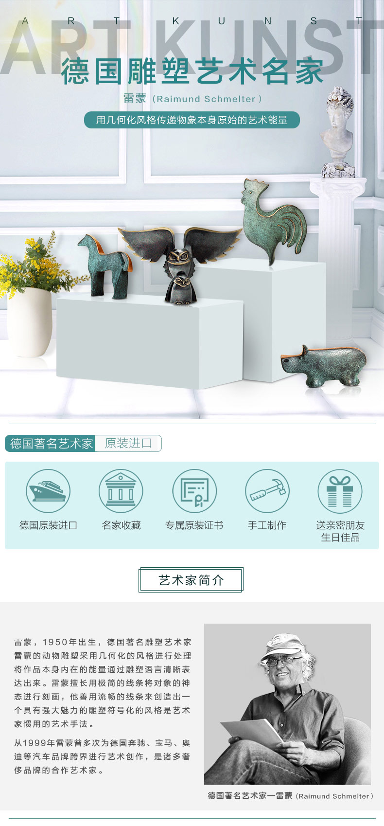 【6F】阿斯蒙迪雷蒙德国进口铜摆件猫头鹰河马公鸡摆件生日礼品创意礼品