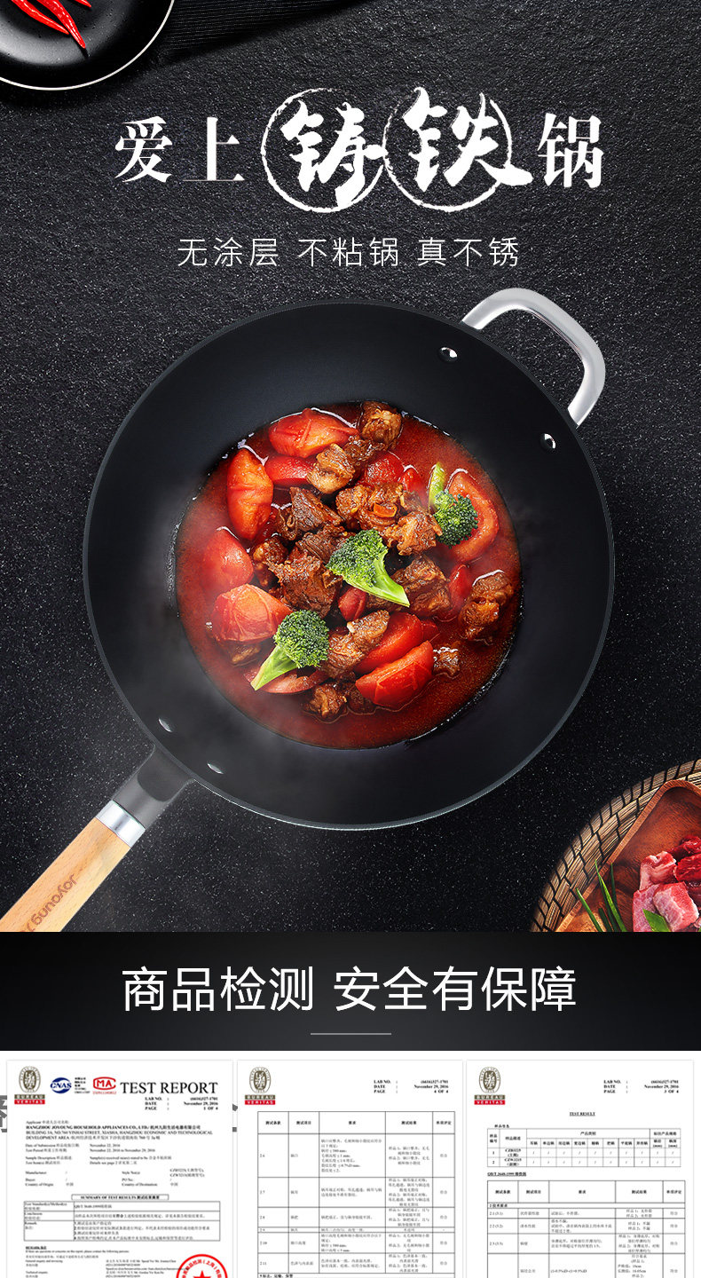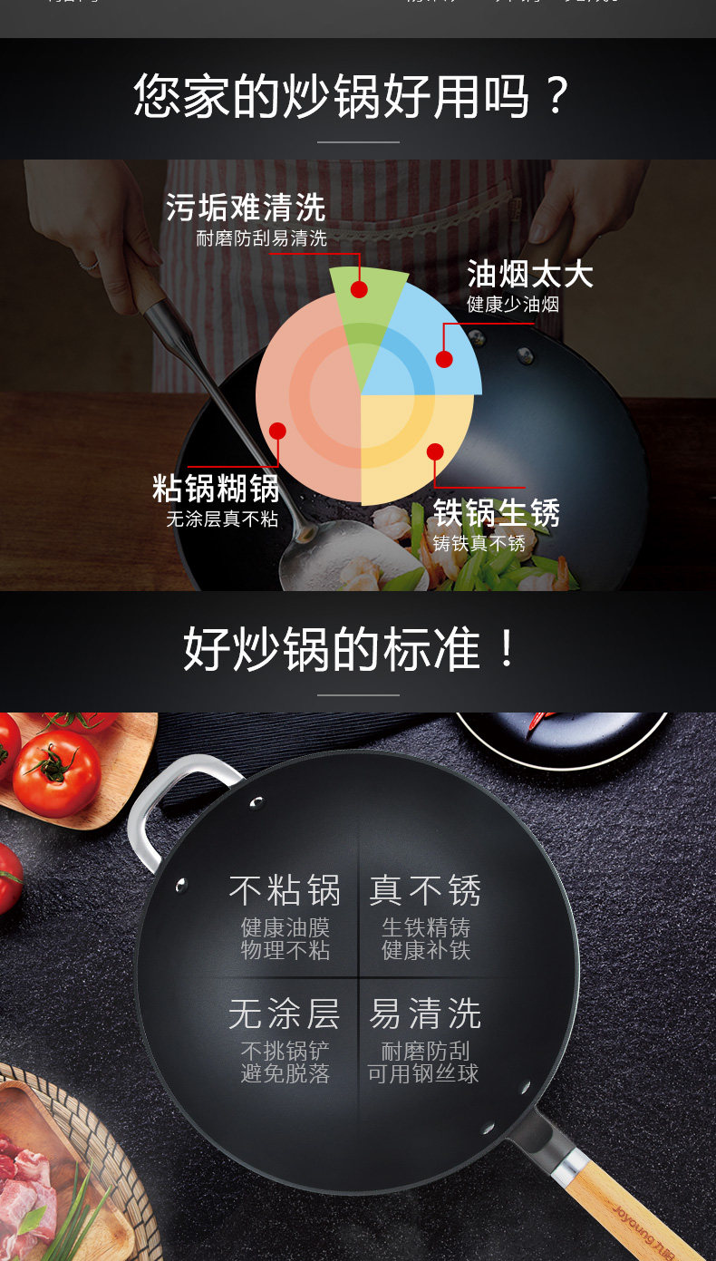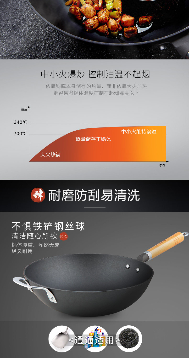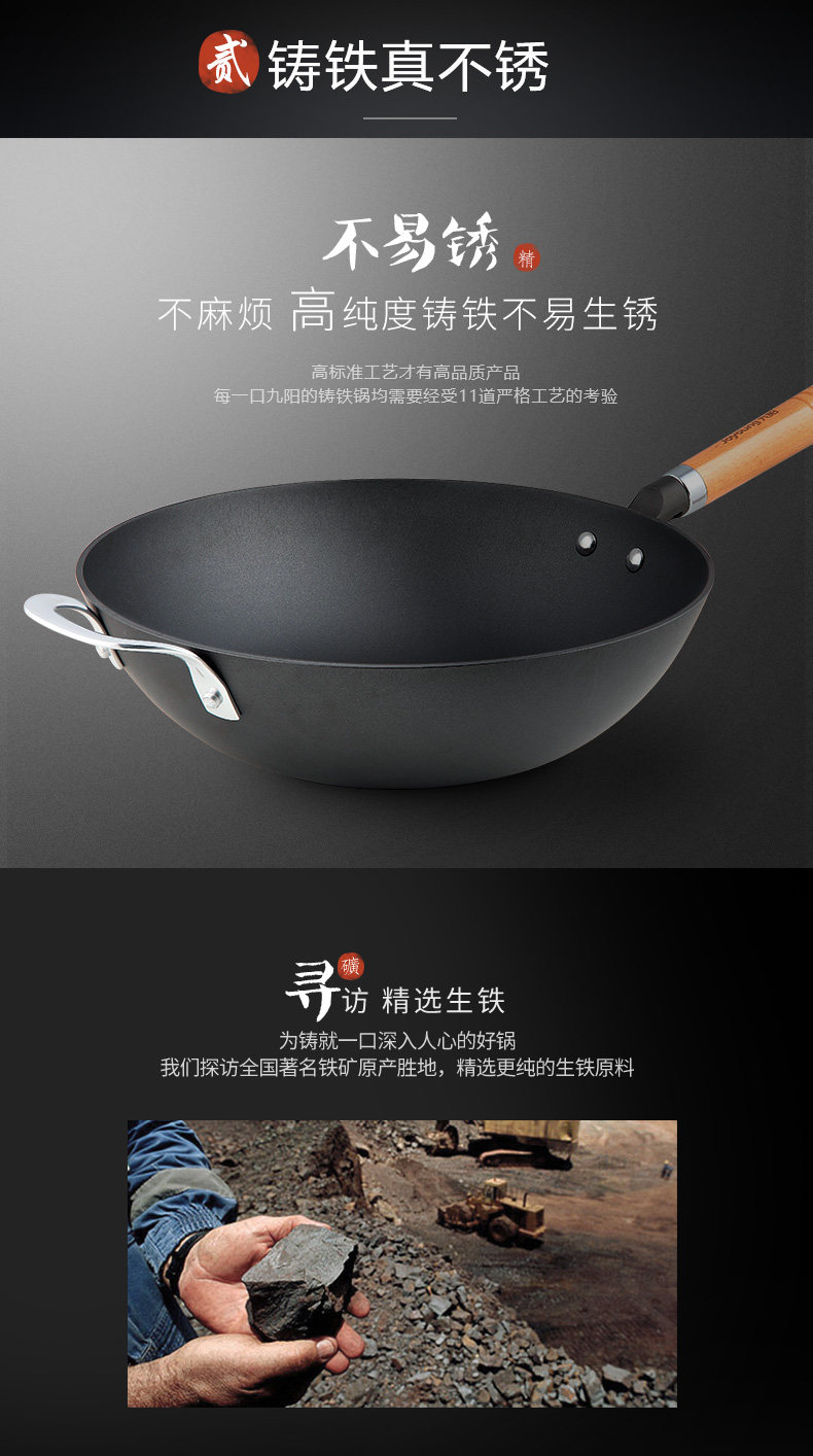 【铸铁真不锈】Joyoung/九阳CZB3225-A炒锅无涂层防刮耐磨32cm
