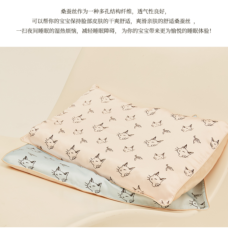 桑罗柔软透气儿童双面枕套少儿桑蚕丝绸印花枕巾头套