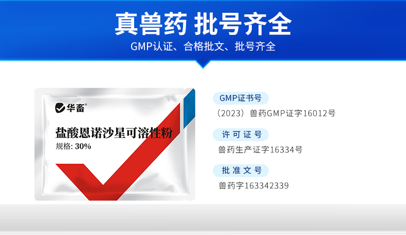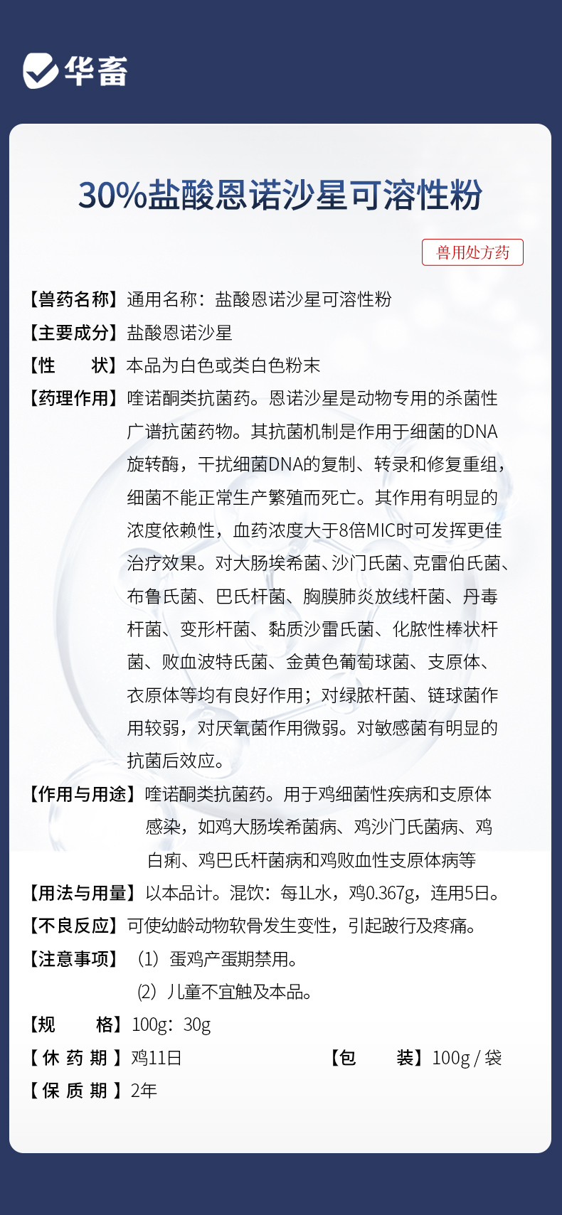 【社群专享】华畜兽药 30%盐酸恩诺沙星可溶性粉 气喘咳嗽 关节肿大 进口溶剂 吸收更好 细菌性疾病 支原体感染