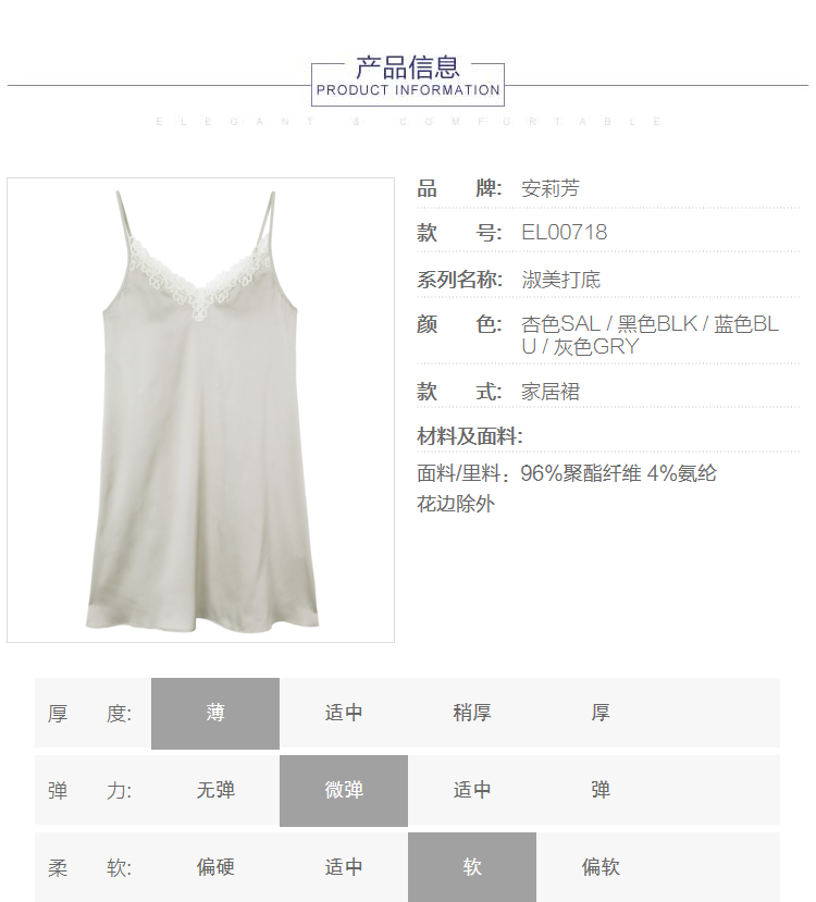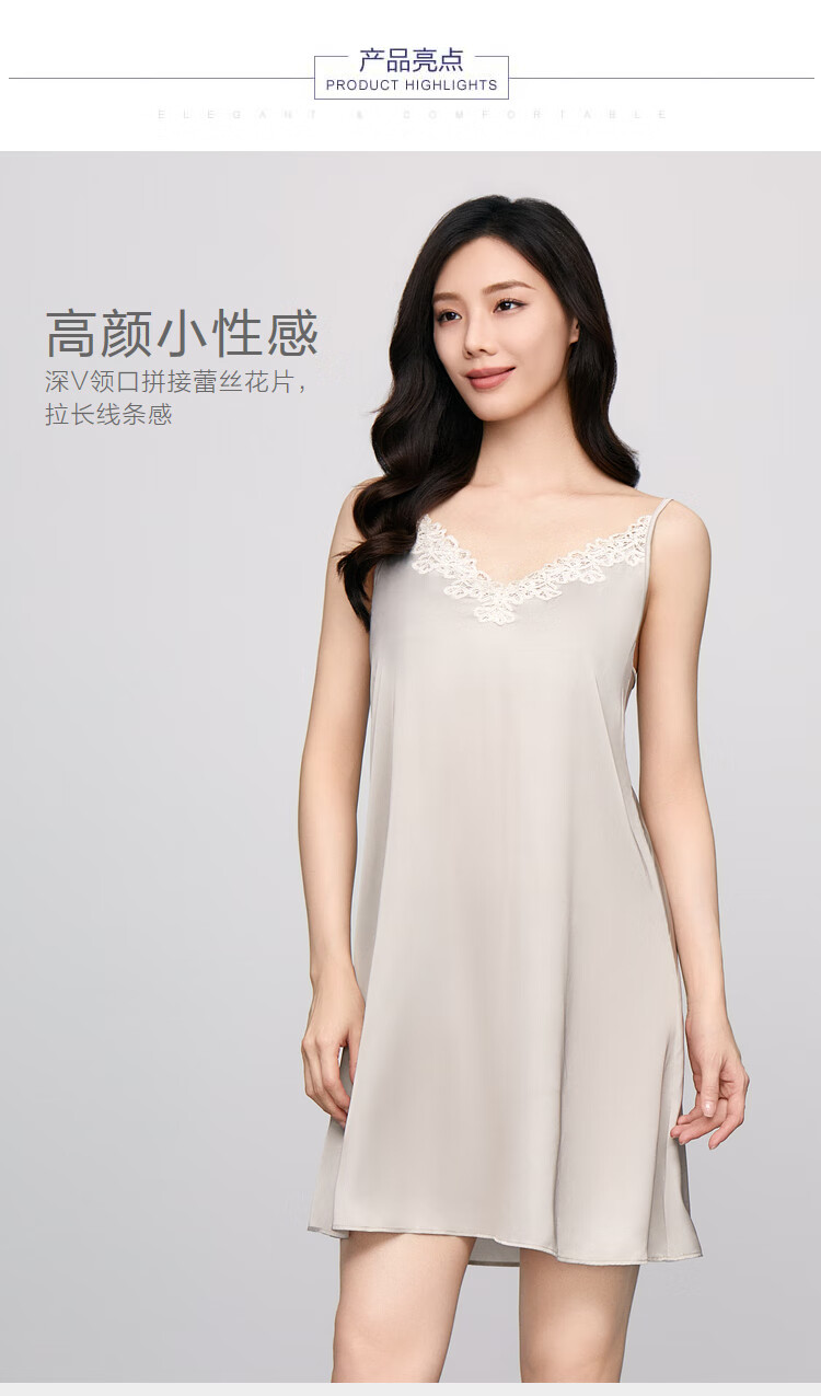 【3F】安莉芳夏季v领吊带性感睡裙短裙女士带杯垫家居裙EL00718