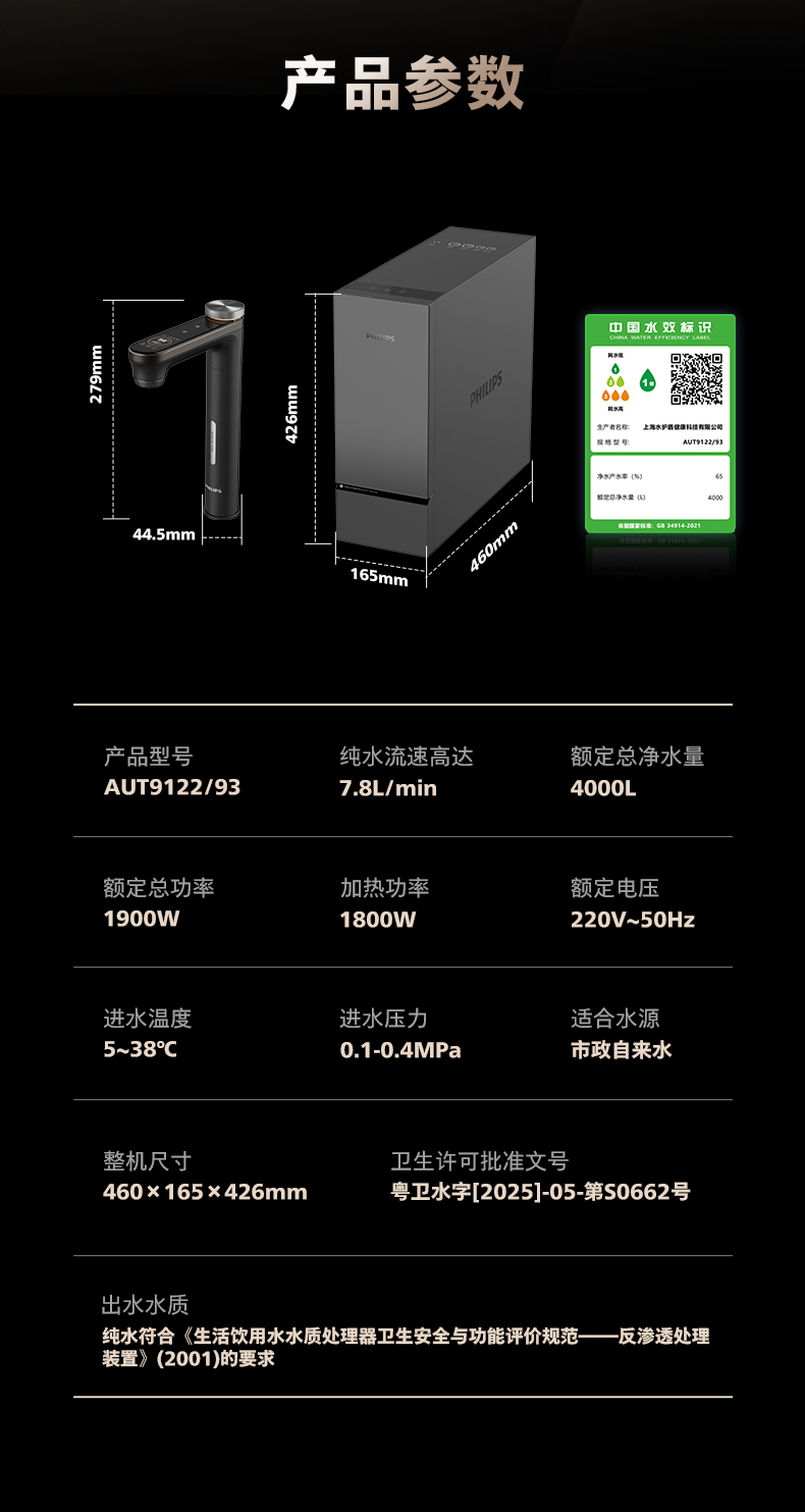 飞利浦(PHILIPS)厨下式净水器U29Pro AUT9122