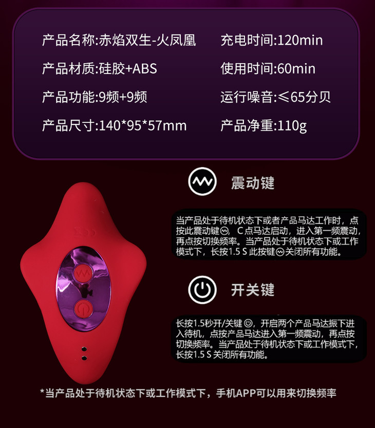 女用热销 赤焰双生穿戴式肛塞APP款 号7898