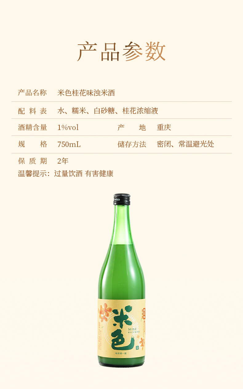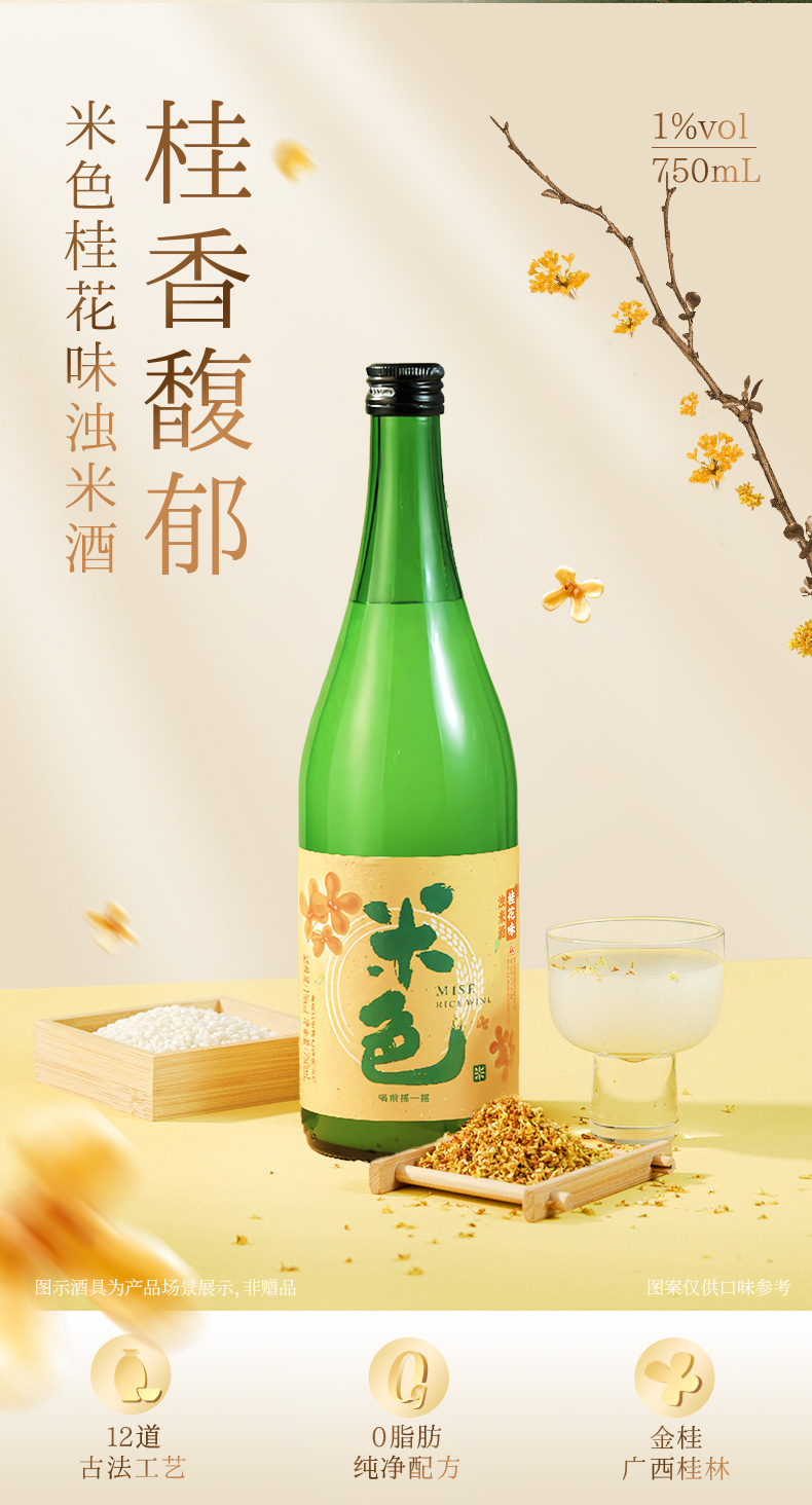 【新品】米色桂花味浊米酒1度750ml醪糟糯米酒低度微醺甜酒