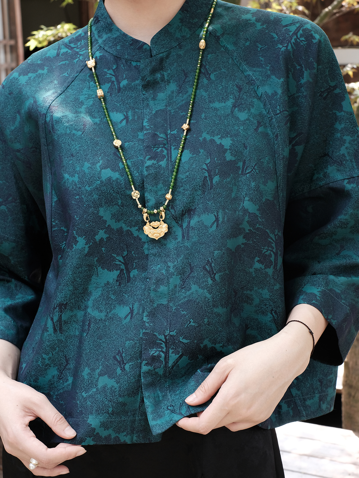 盛唐婧 |真丝宋锦发财树对襟上衣