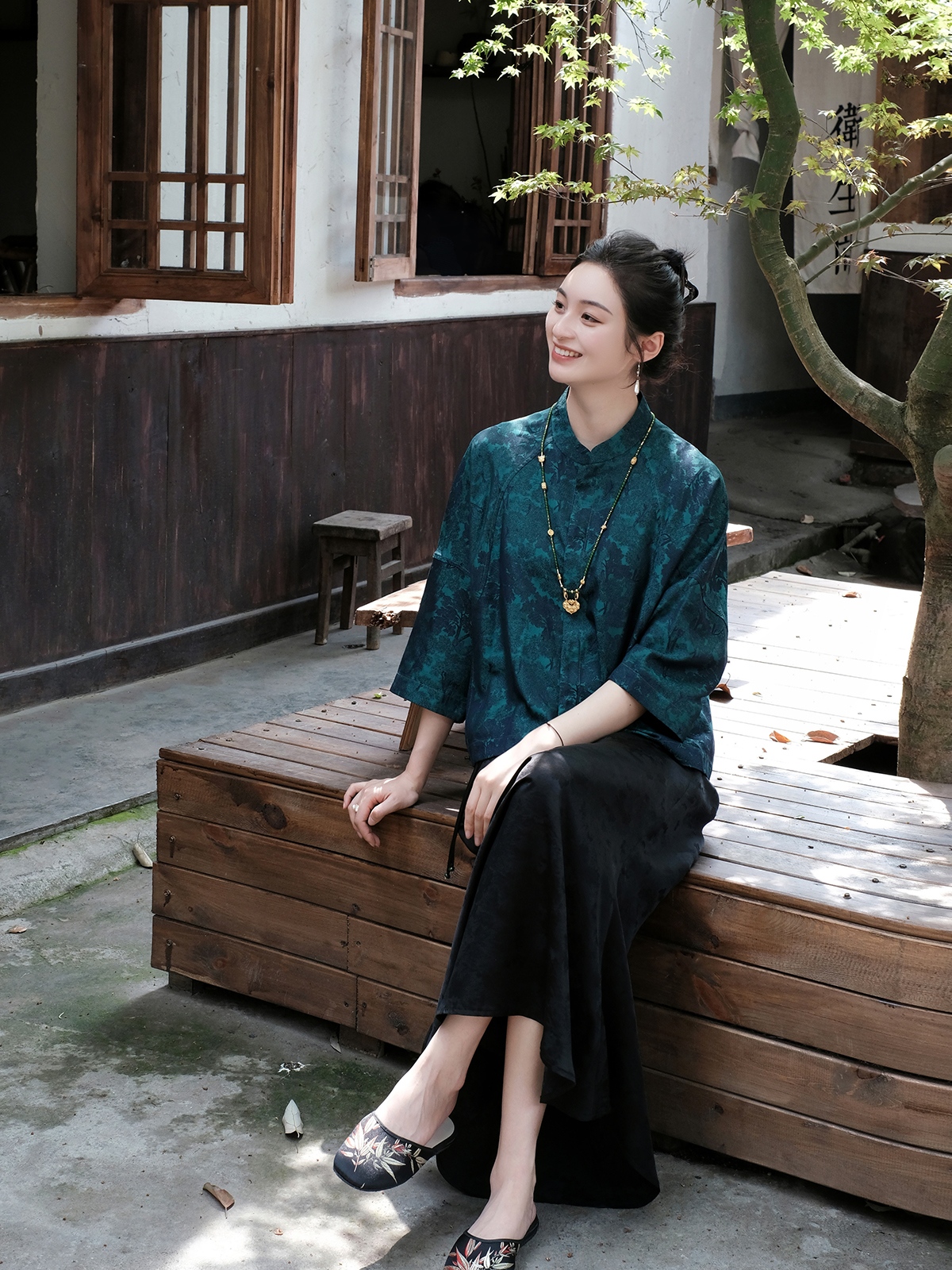 盛唐牡丹 |梅兰竹菊真丝冠乐皱斜襟旗袍裙