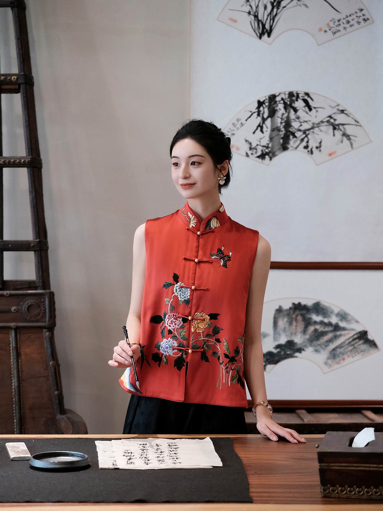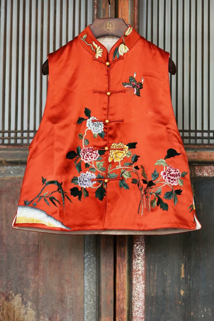 盛唐牡丹大师系列 | 重缎真丝手绣薄棉马甲 (盛唐牡丹与非遗传承人王小潇联名系列)