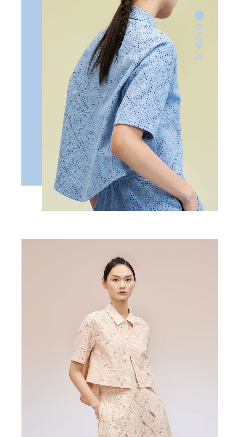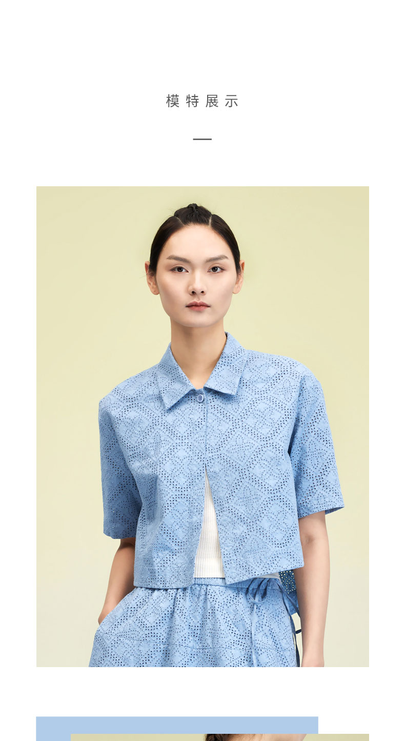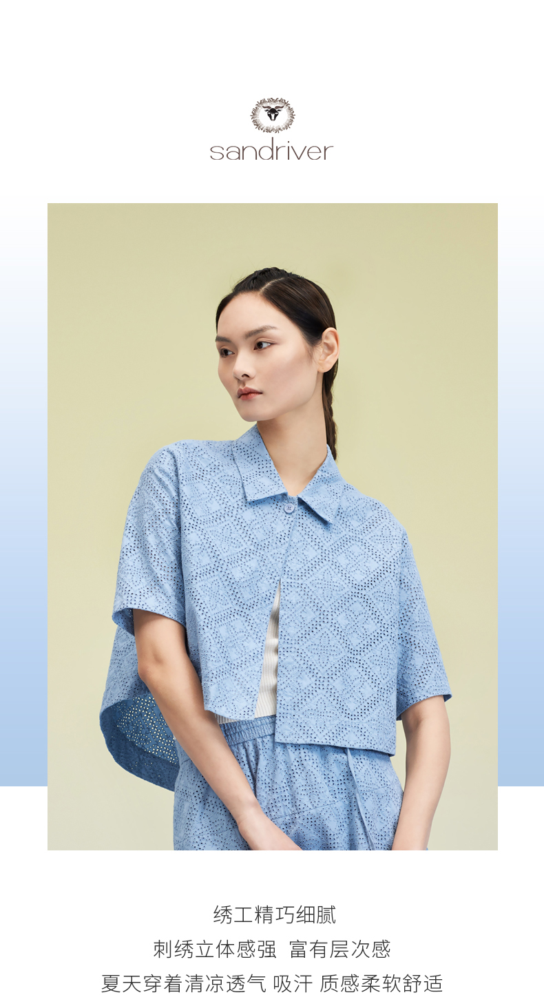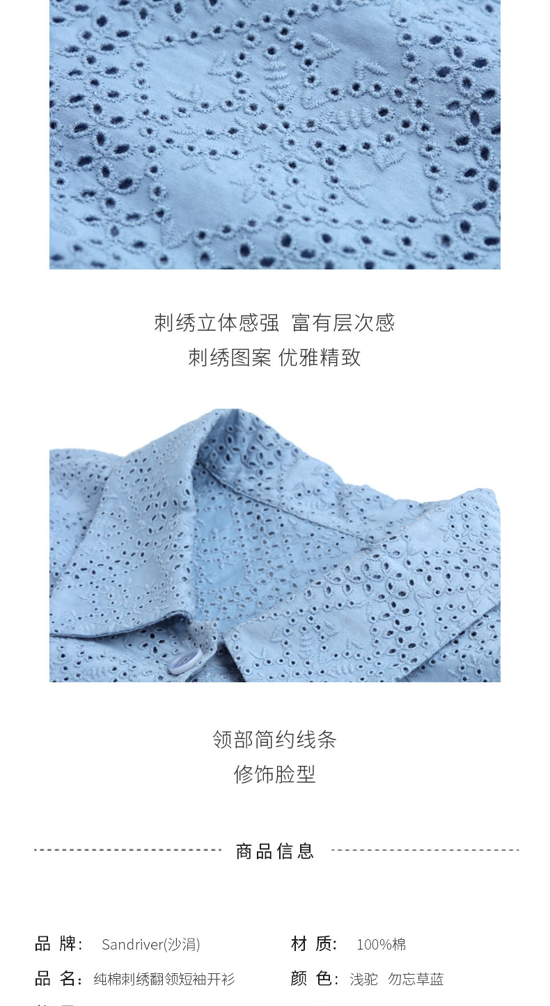 纯棉刺绣翻领短袖开衫 SJS95W025W