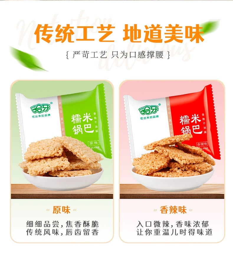 哈牙糯米锅巴新品网红办公休闲小吃香辣味原味整箱散装锅巴零食