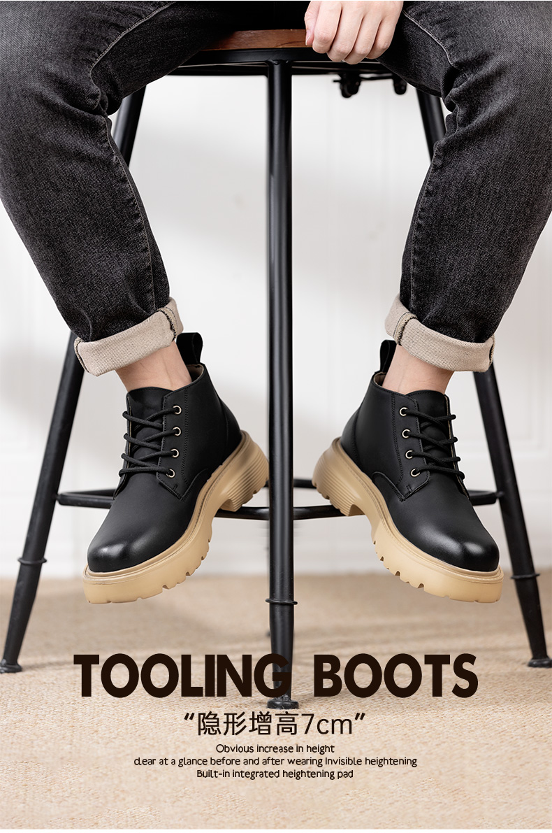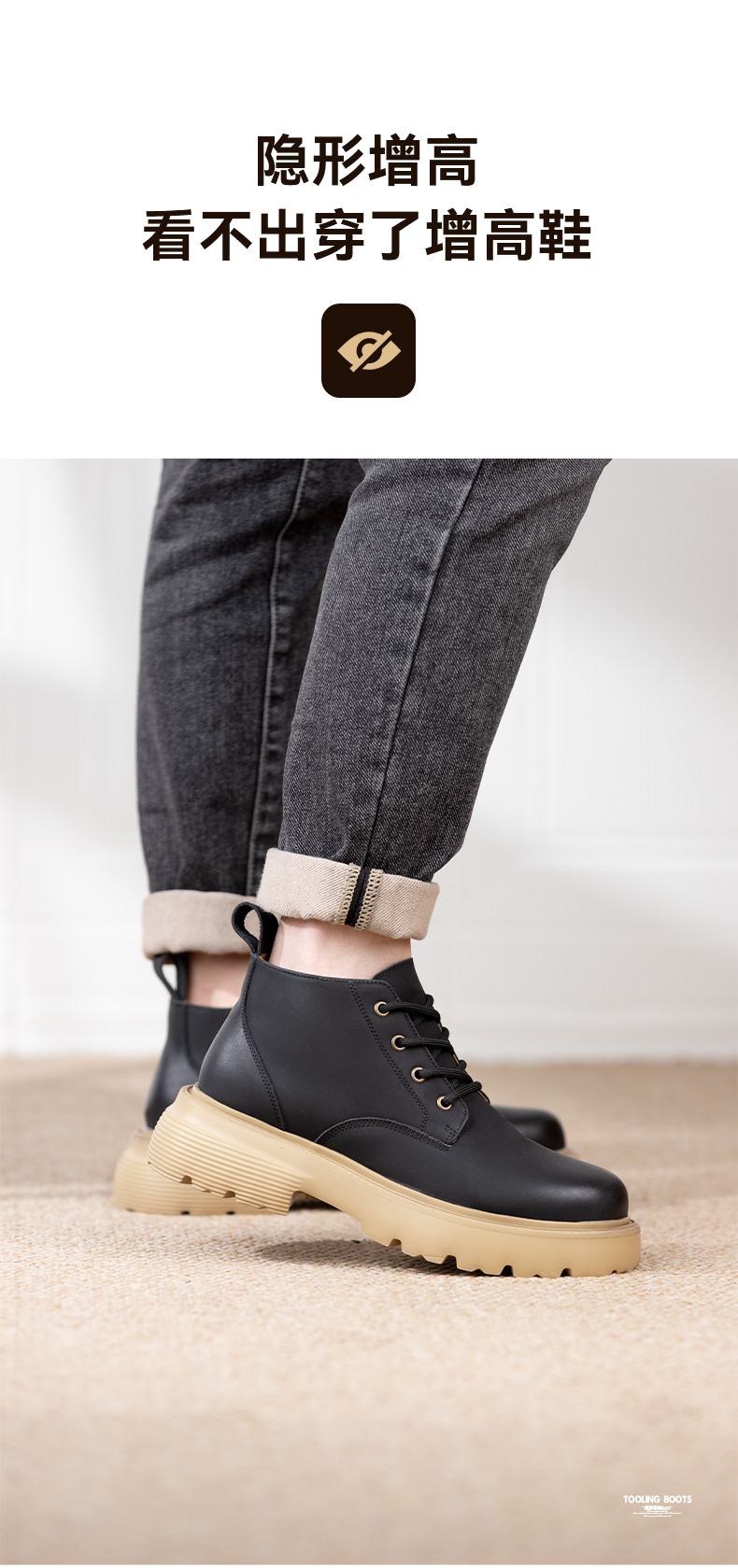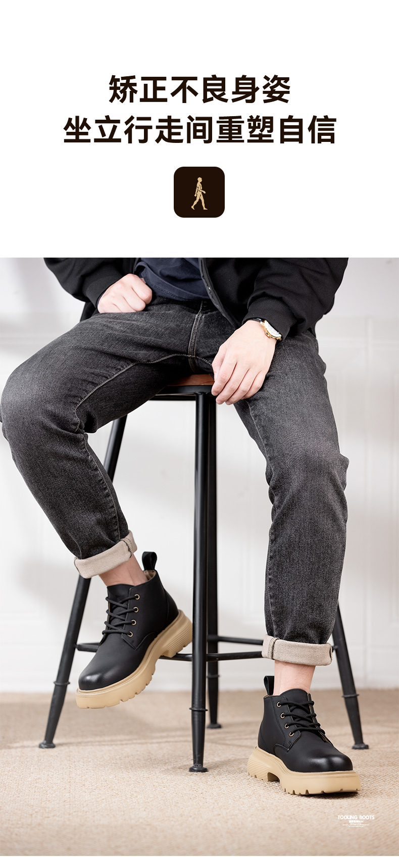 马丁靴男隐形内增高7cm高帮男靴休闲鞋增高鞋工装靴