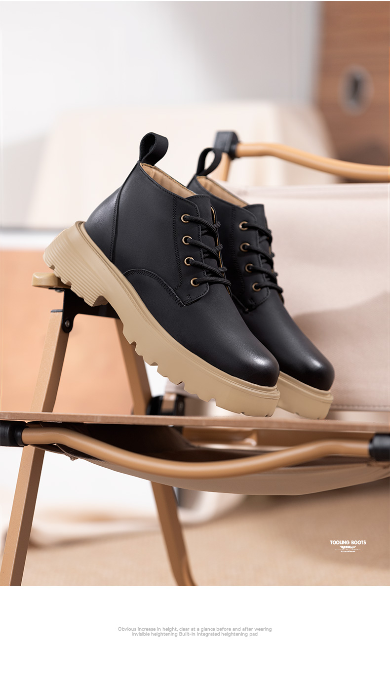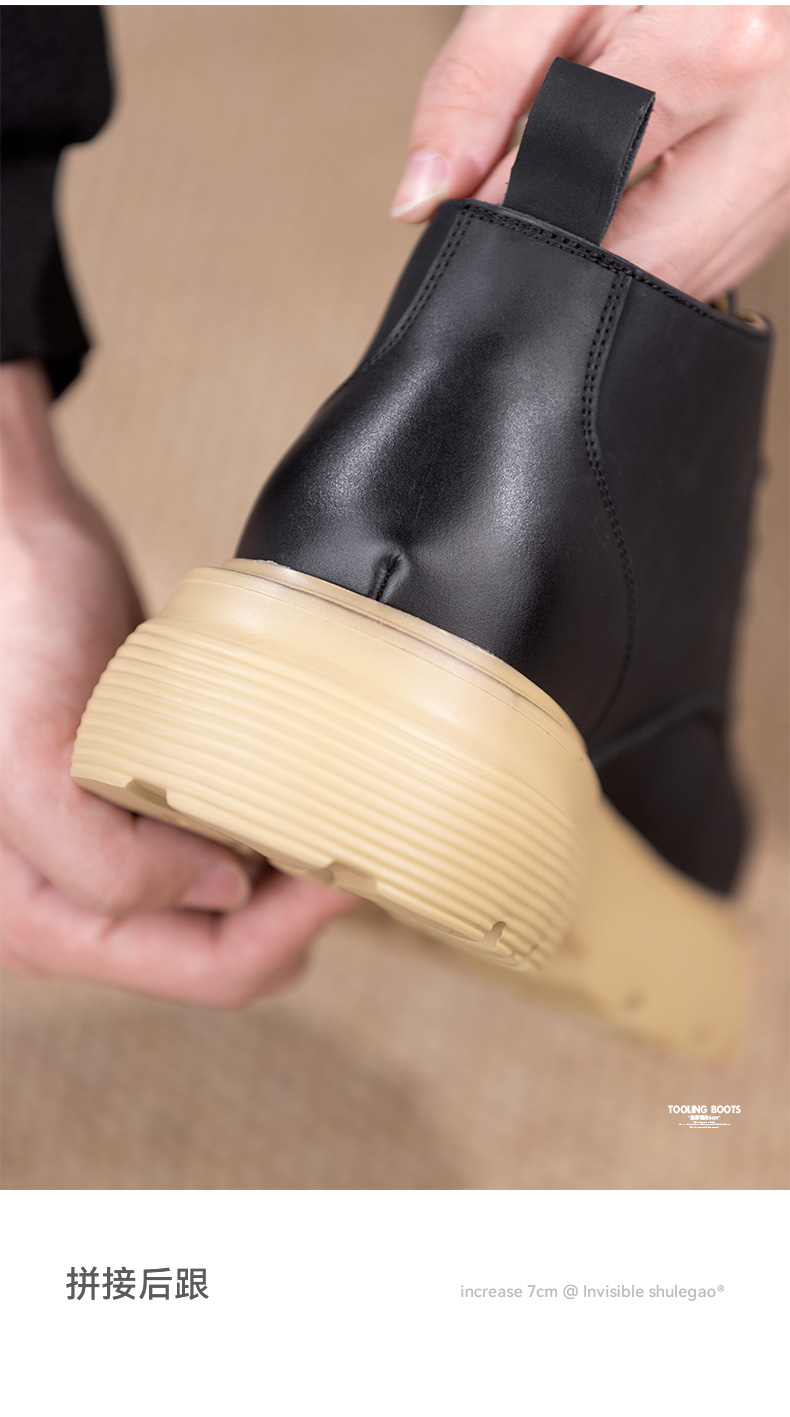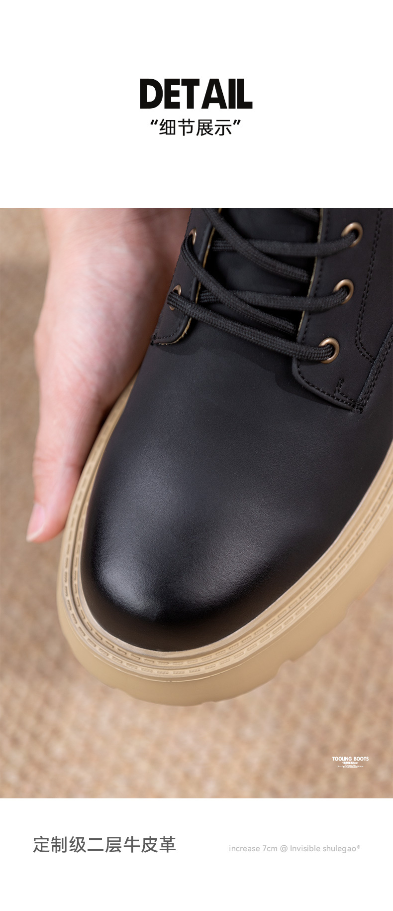 马丁靴男隐形内增高7cm高帮男靴休闲鞋增高鞋工装靴