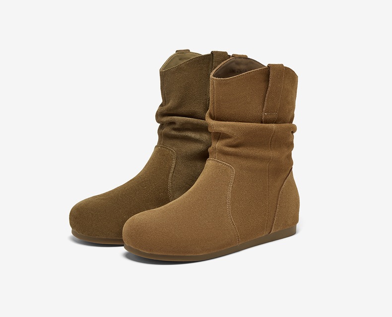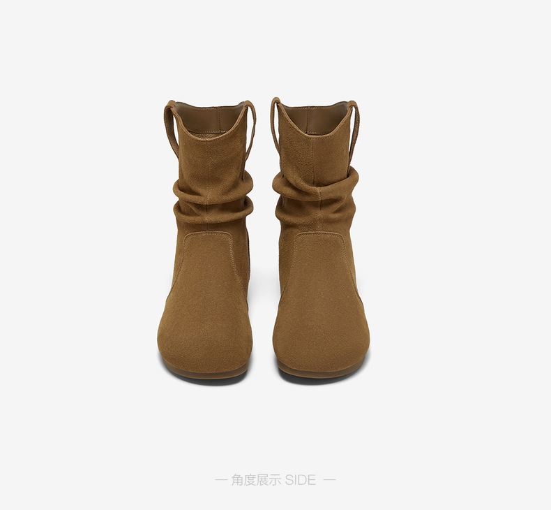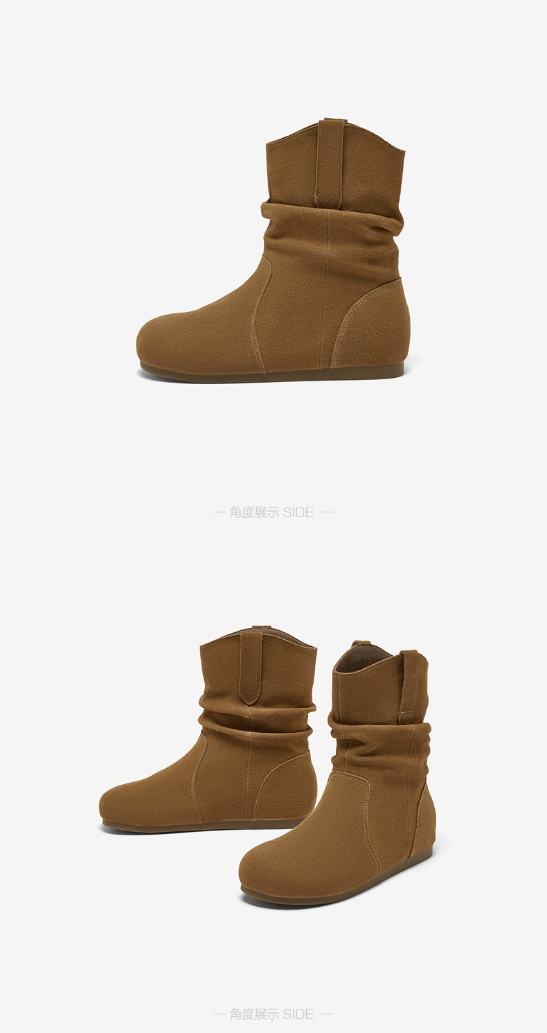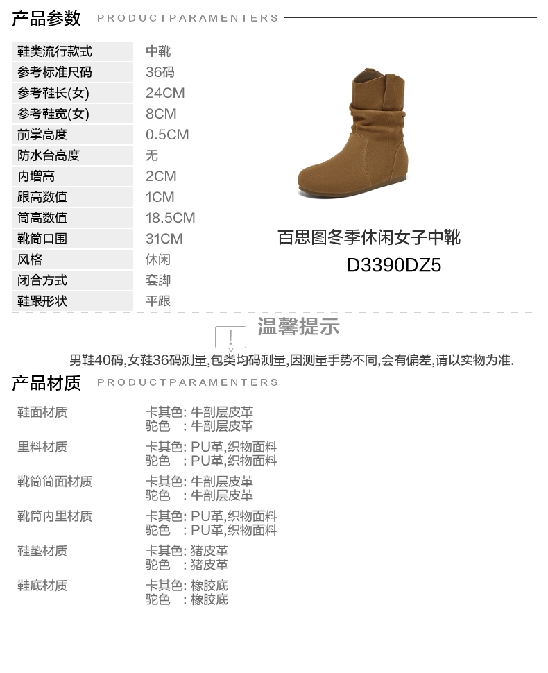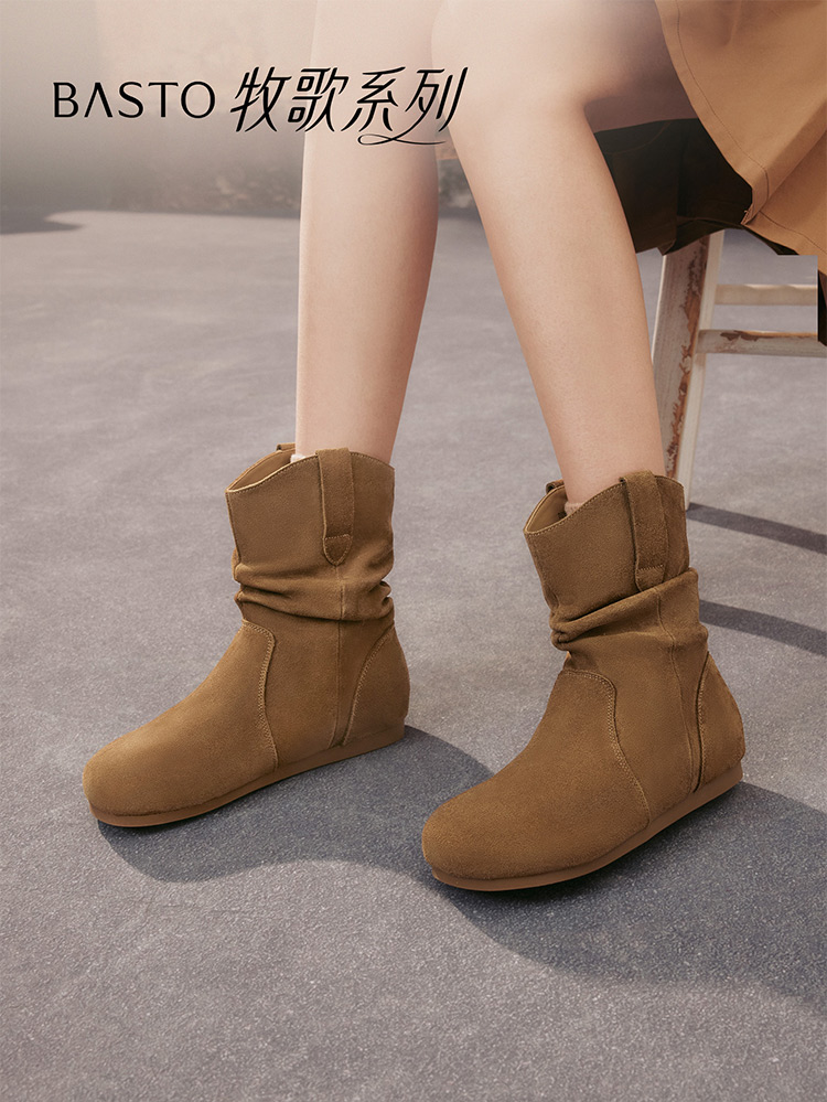 【云粉节】 BF楼百思图2025冬季新款真皮平底西部堆堆靴巴恩风女短靴D3390DZ5吊牌价899.现价369