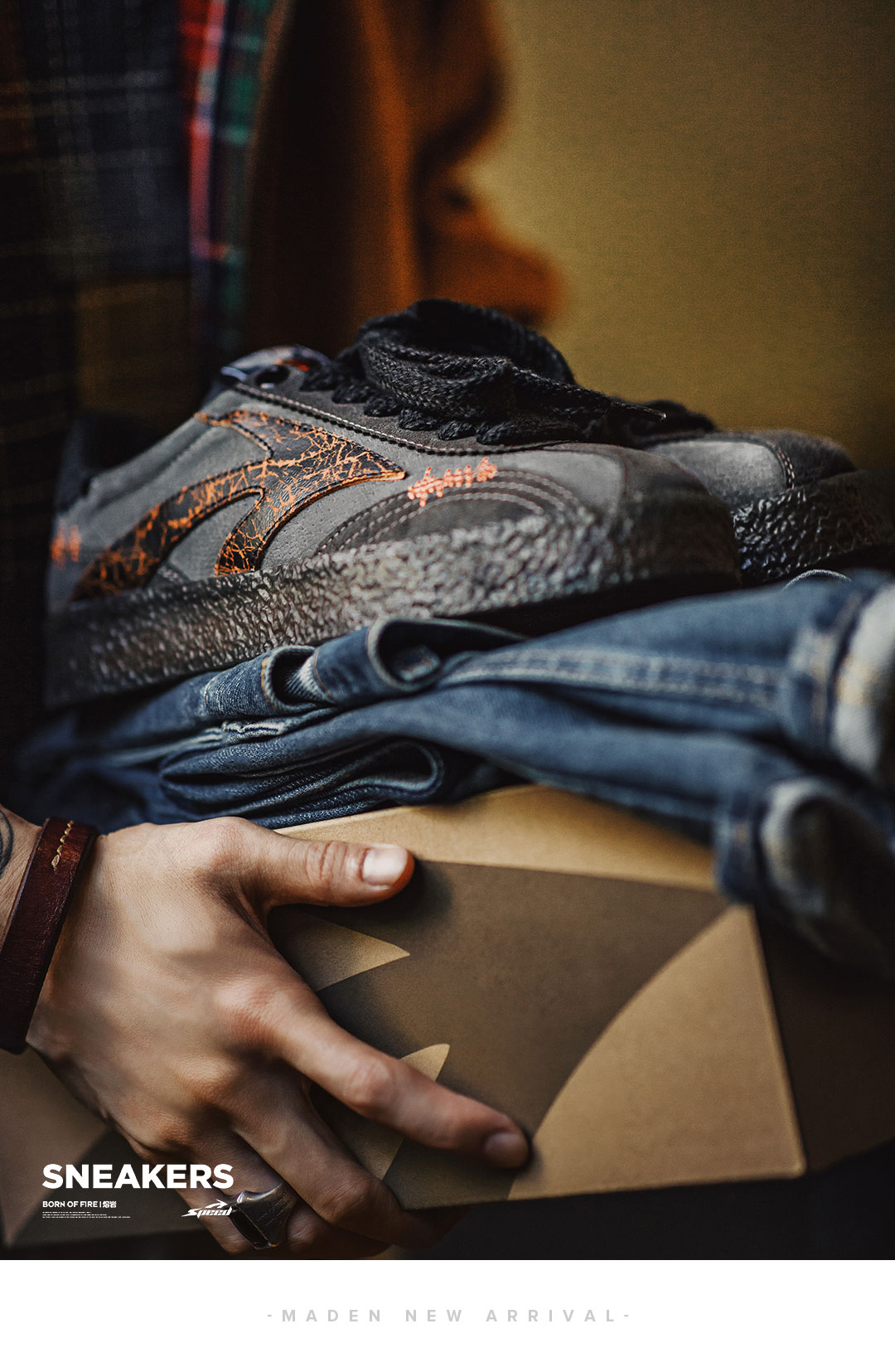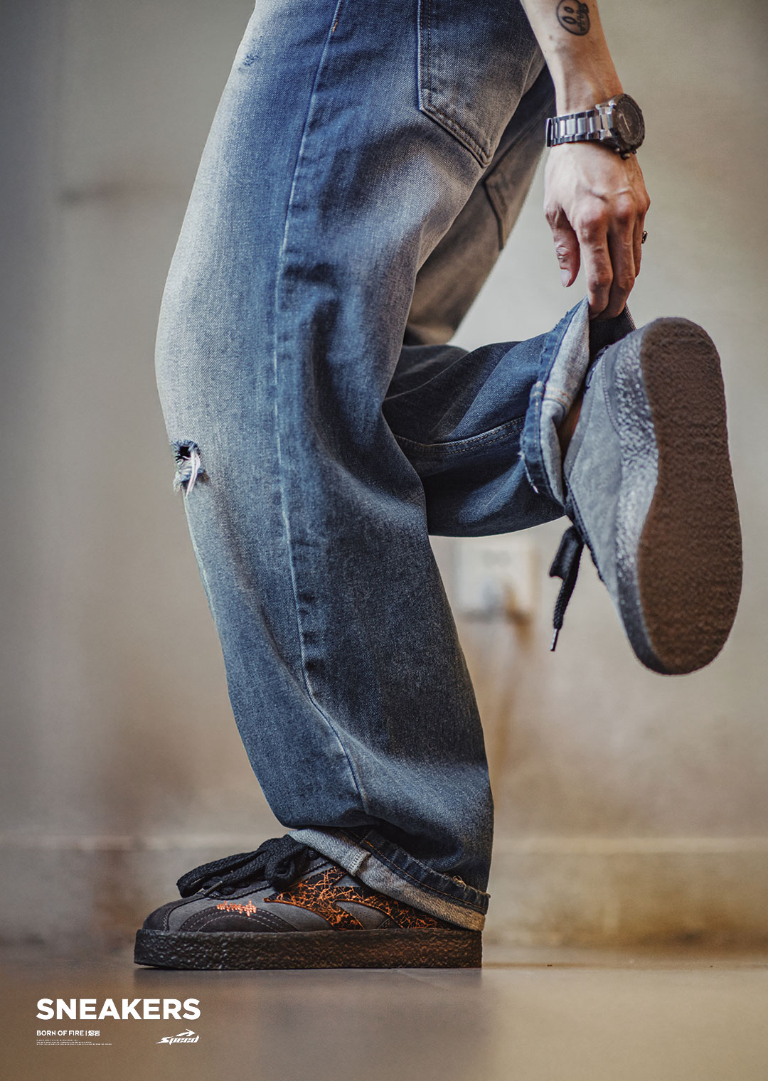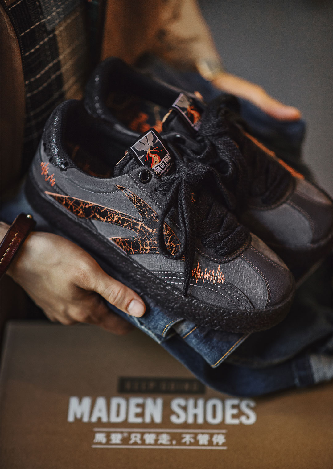 马登美式火山熔岩厚底板鞋黑色低帮爆裂纹潮流水晶底增高休闲鞋男