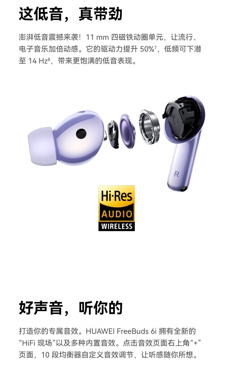 【一手样机】华为Freebuds 6i 入耳式降噪耳机 白/黑/紫 商品图8