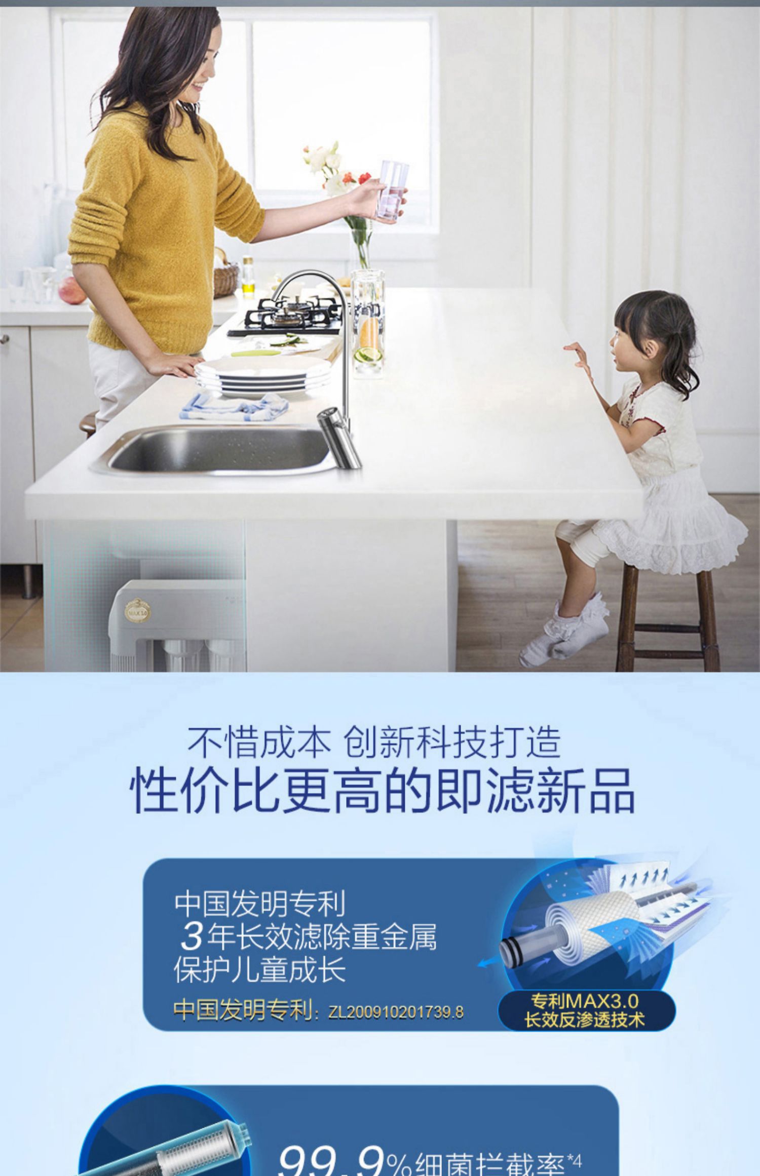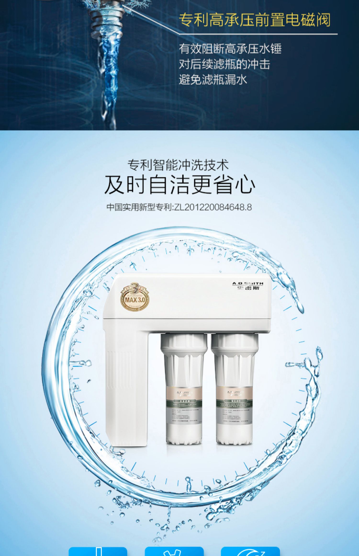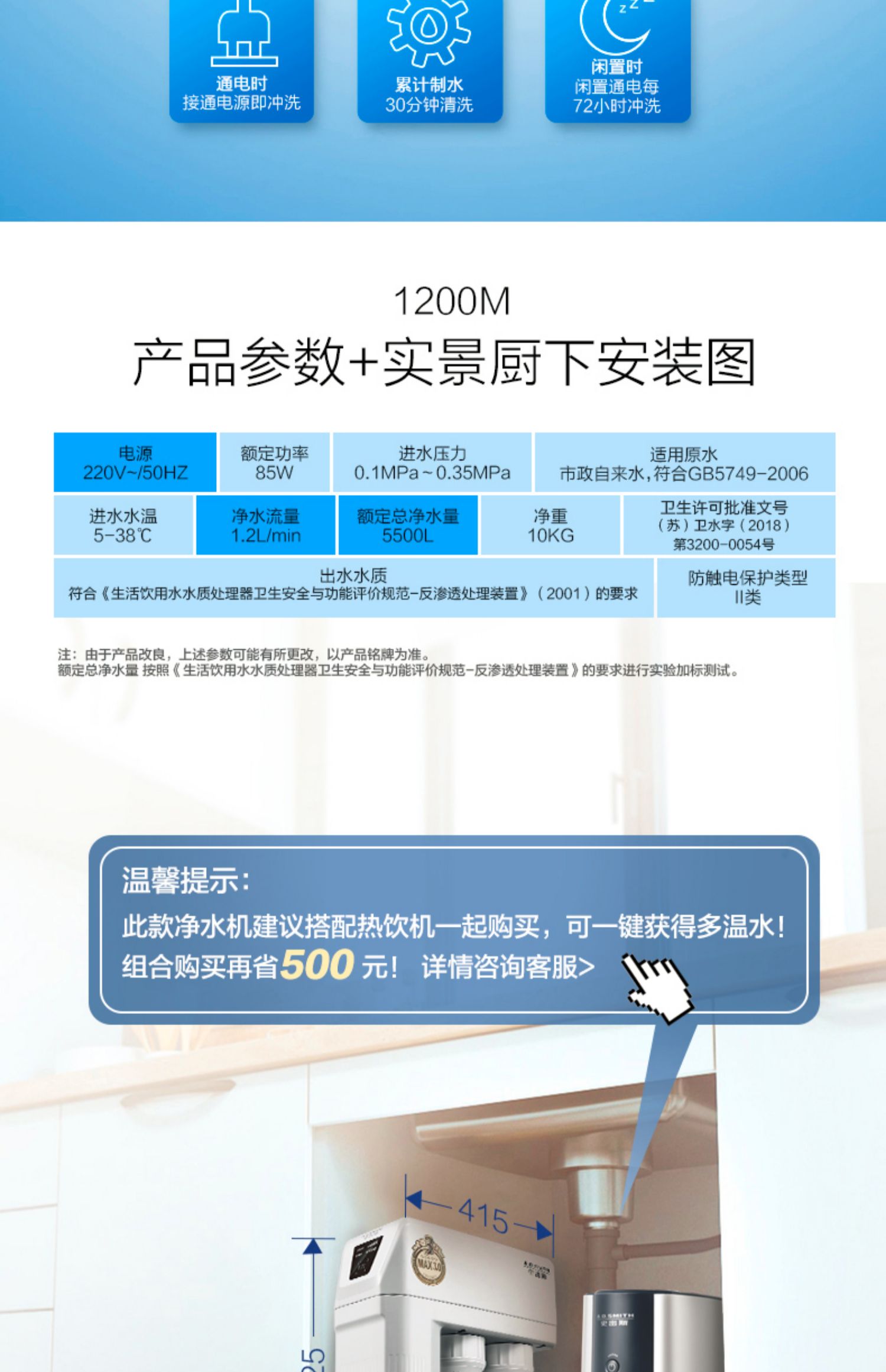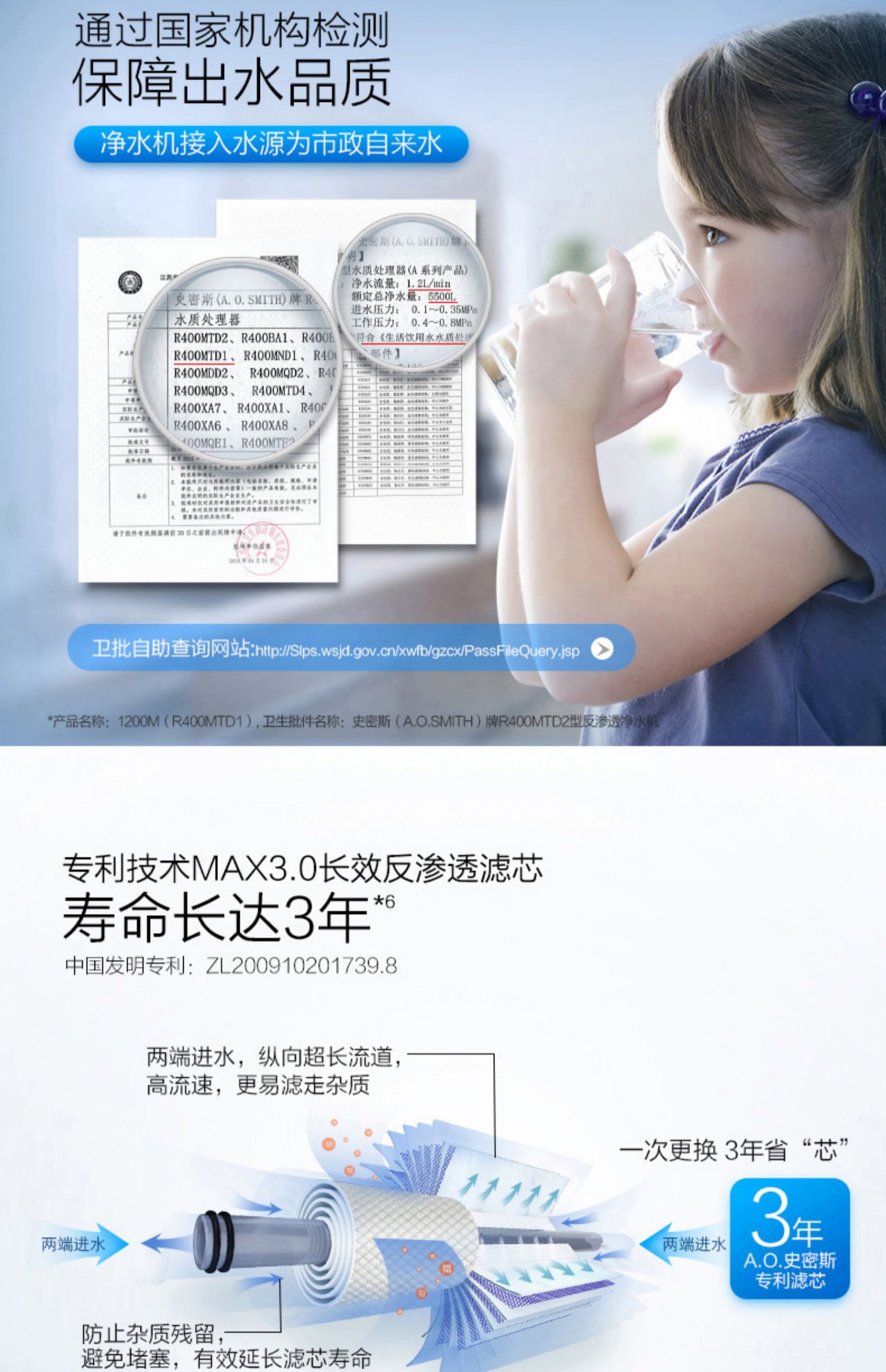 AO史密斯1200M家用自来水过滤厨房净水器反渗透直饮净水机滤芯