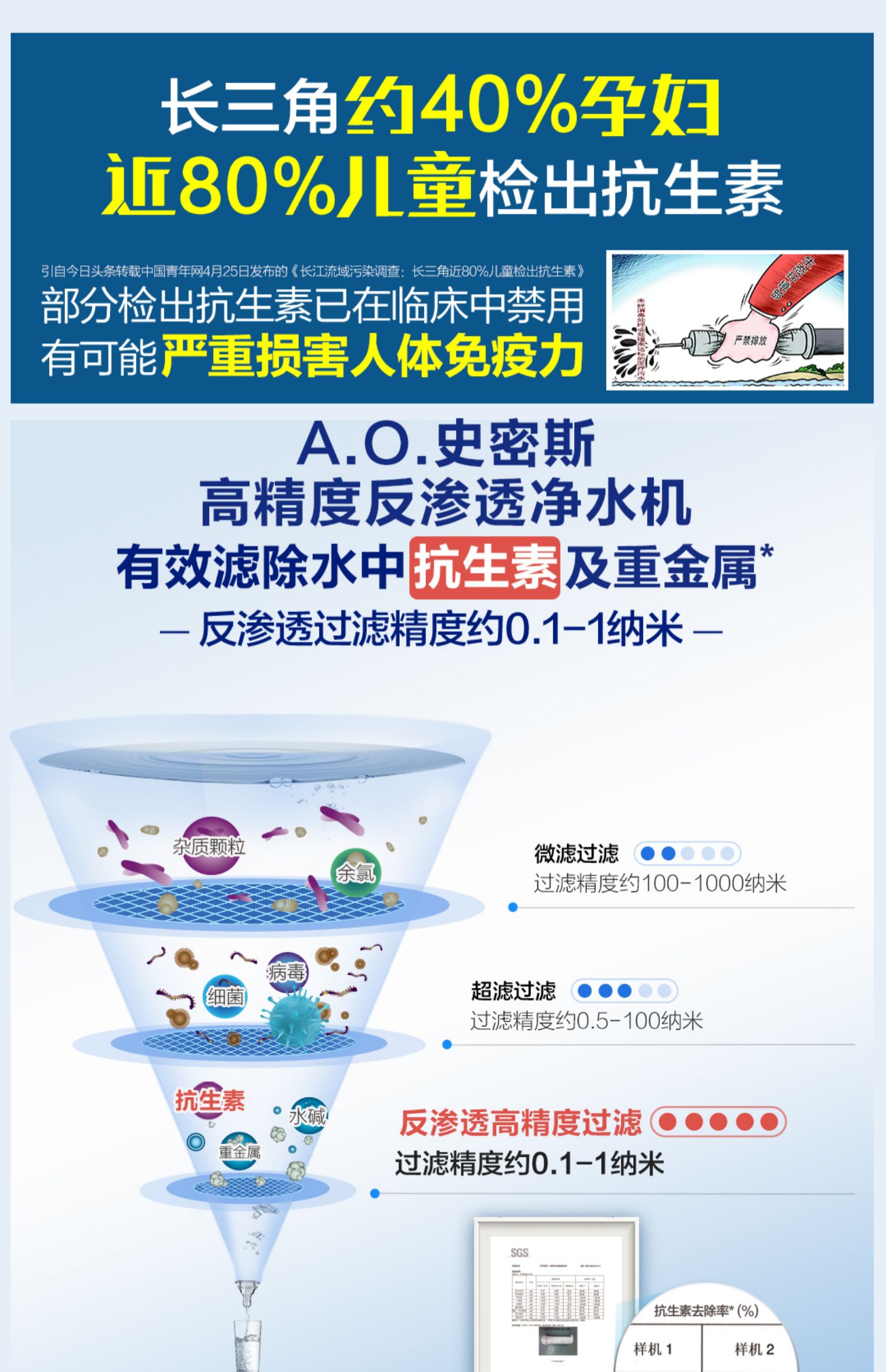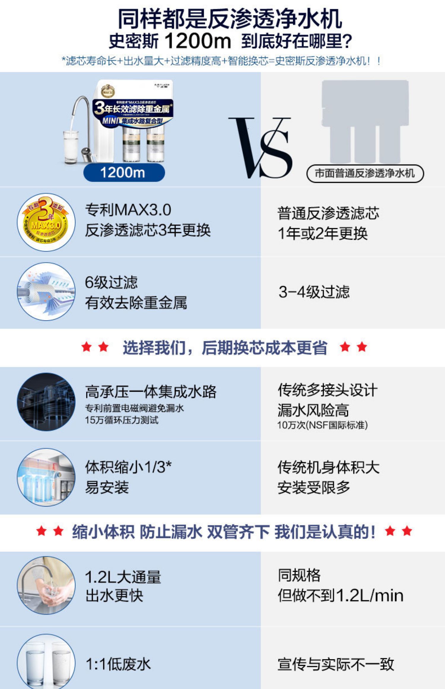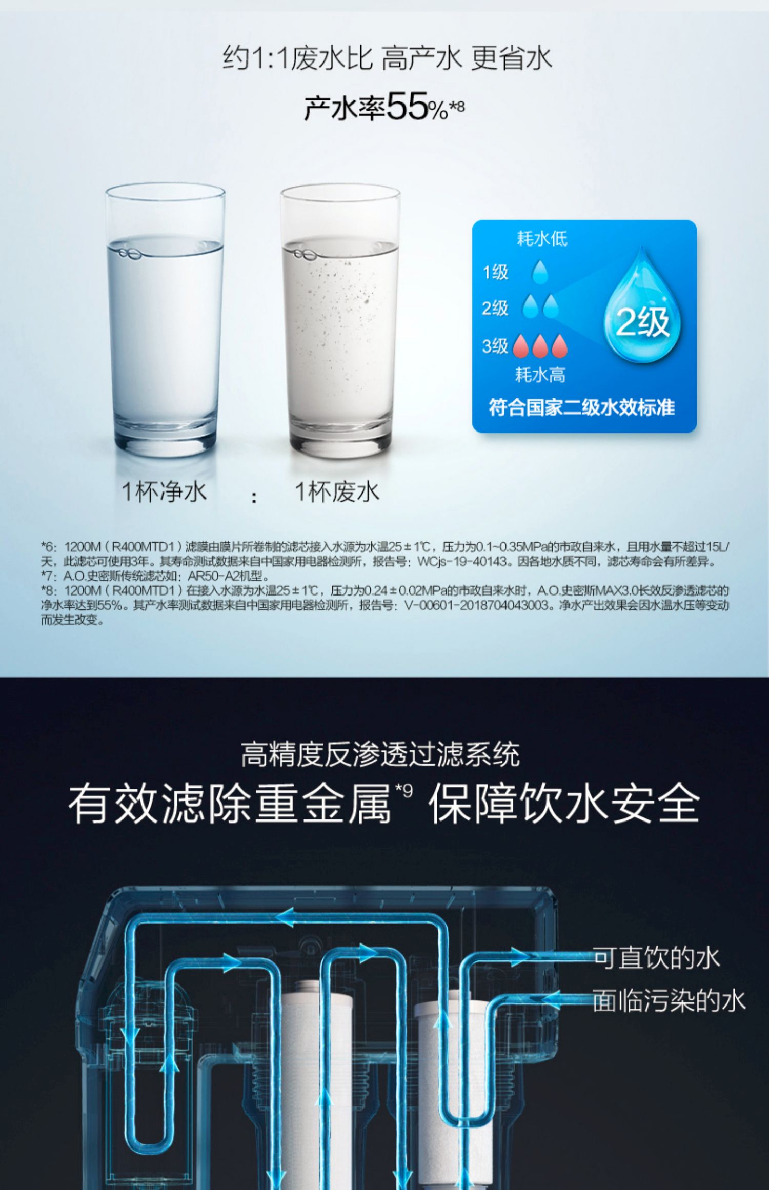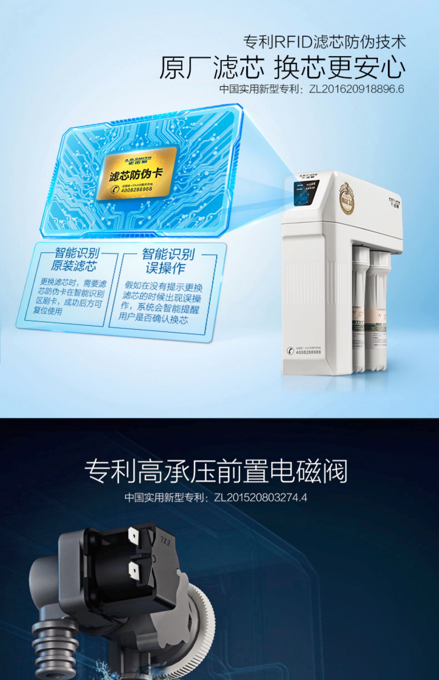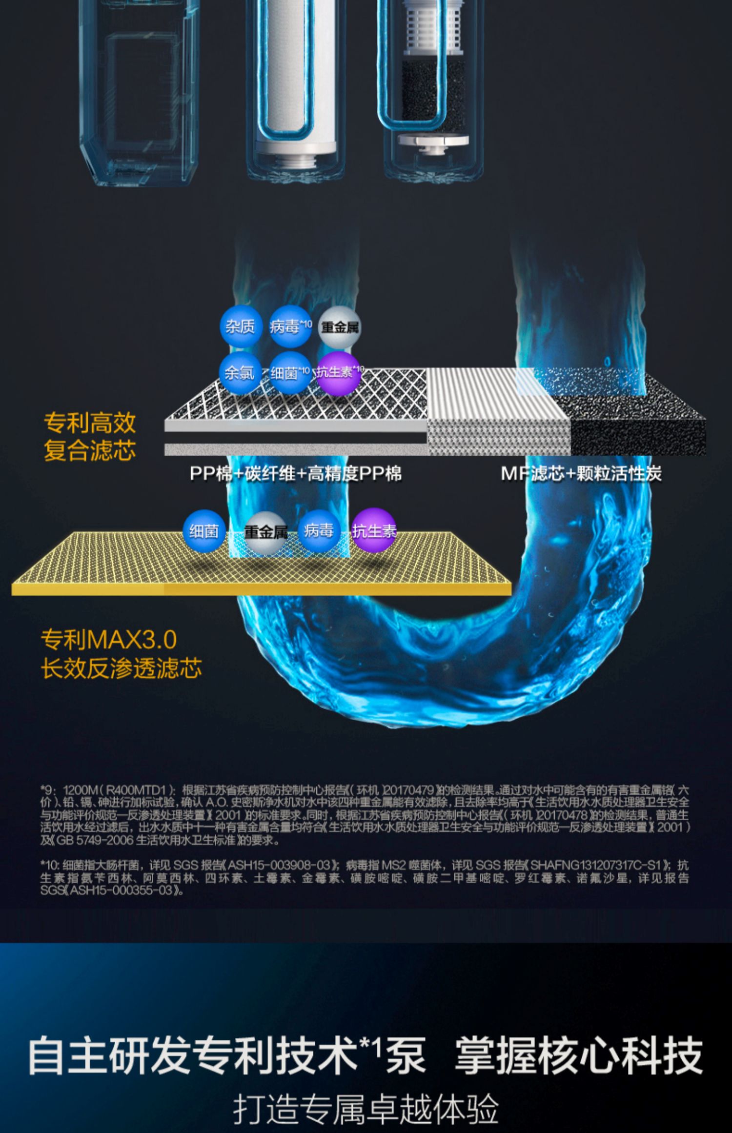 AO史密斯1200M家用自来水过滤厨房净水器反渗透直饮净水机滤芯