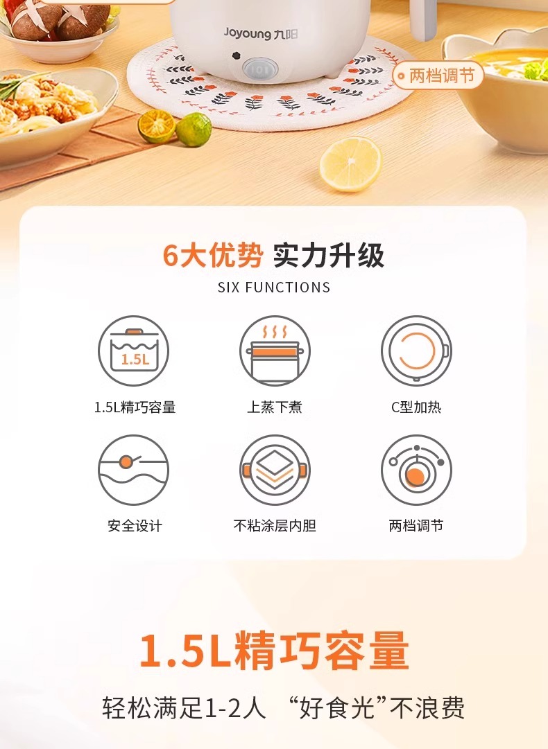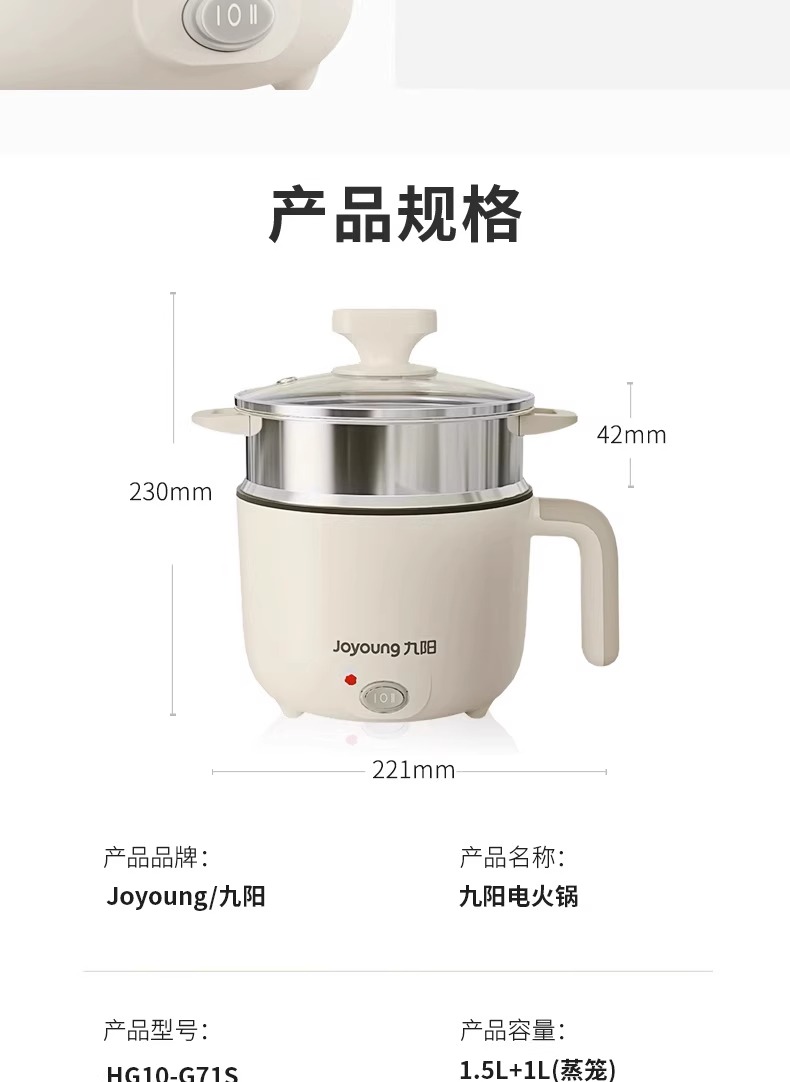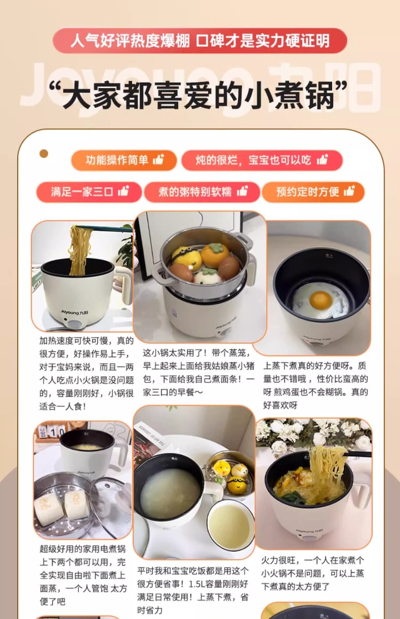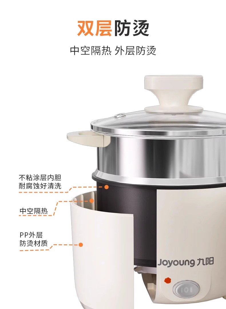 九阳电煮锅宿舍学生煮面锅蒸煮一体多功能火锅家用小型蒸锅电热锅