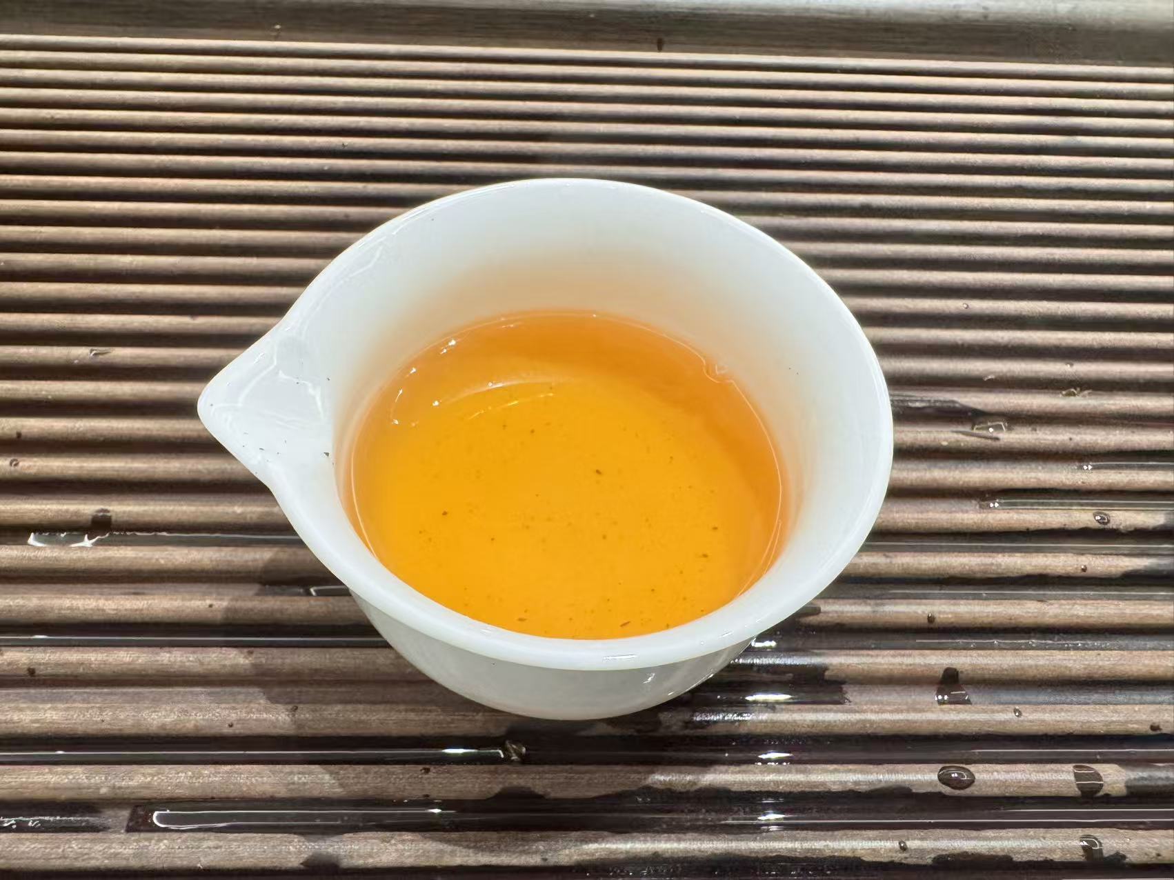 茶汤厚度提升,入口清甜转醇厚,蜜甜感贯穿舌尖至喉头,回甘迅速,生津明显,两颊泛起湿润感;