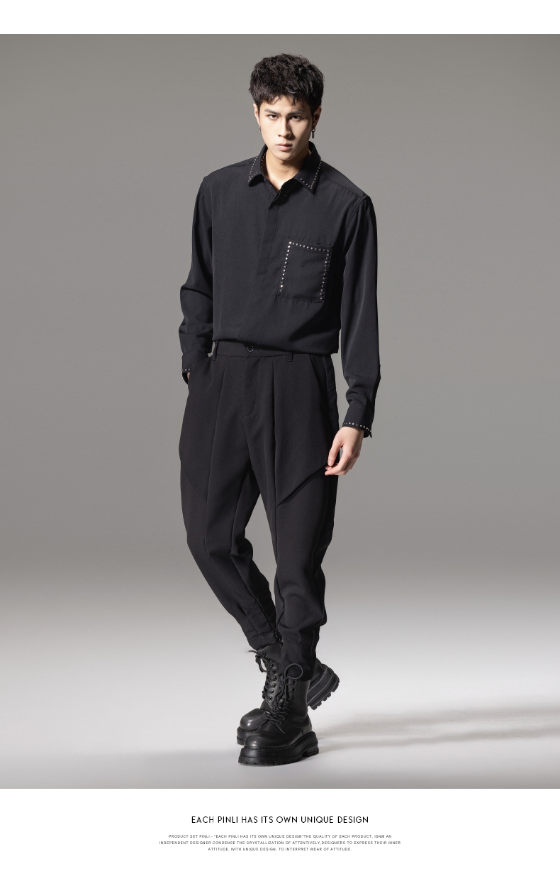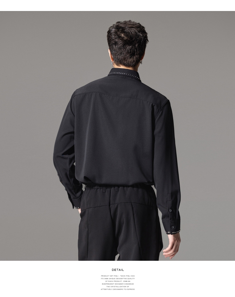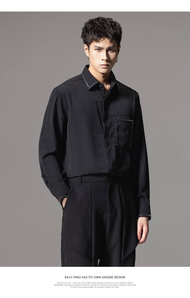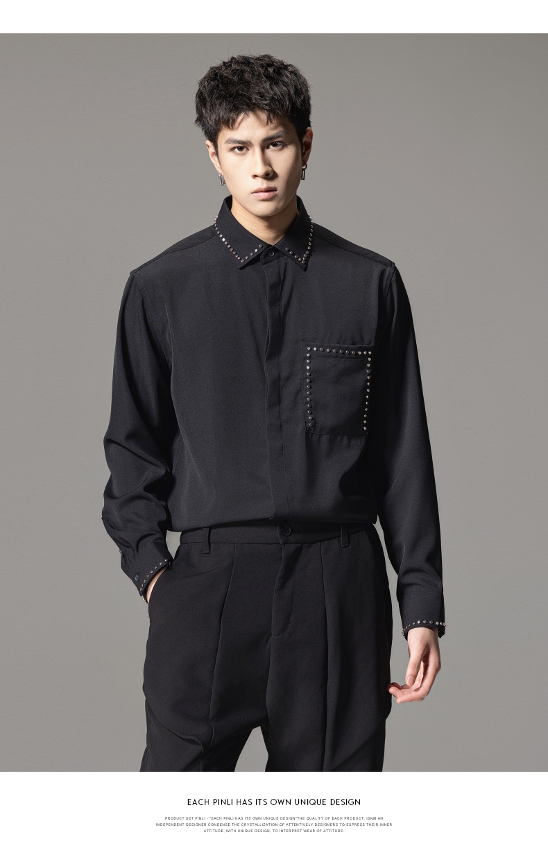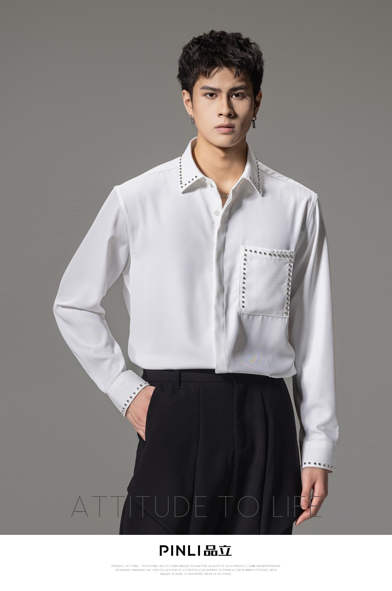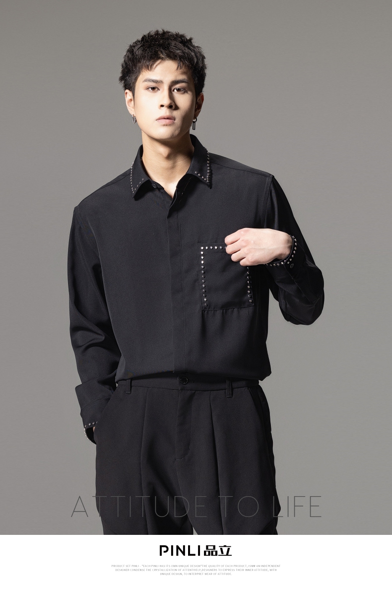 PINLI品立秋季新款男士宽松尖领休闲长袖衬衫衬衣GD241113003