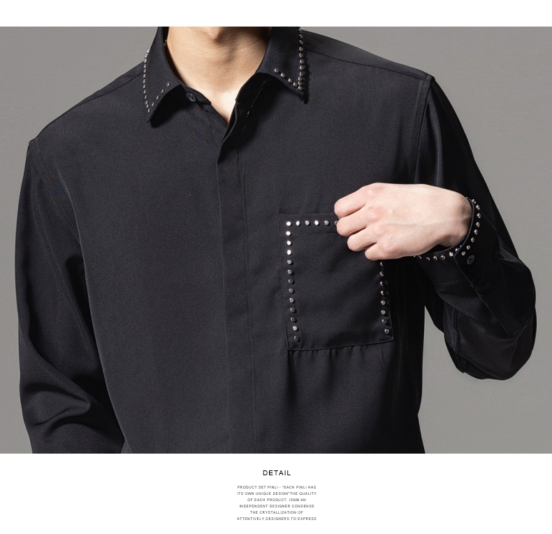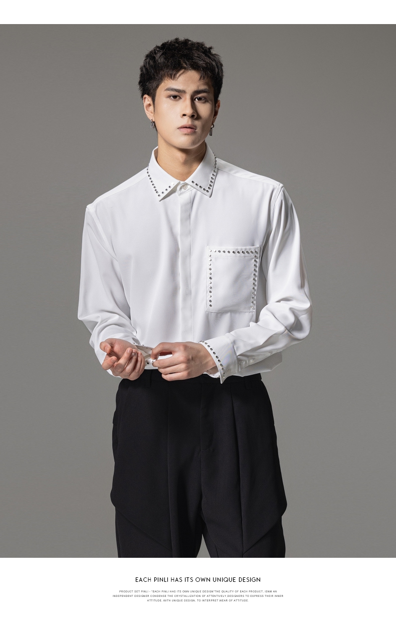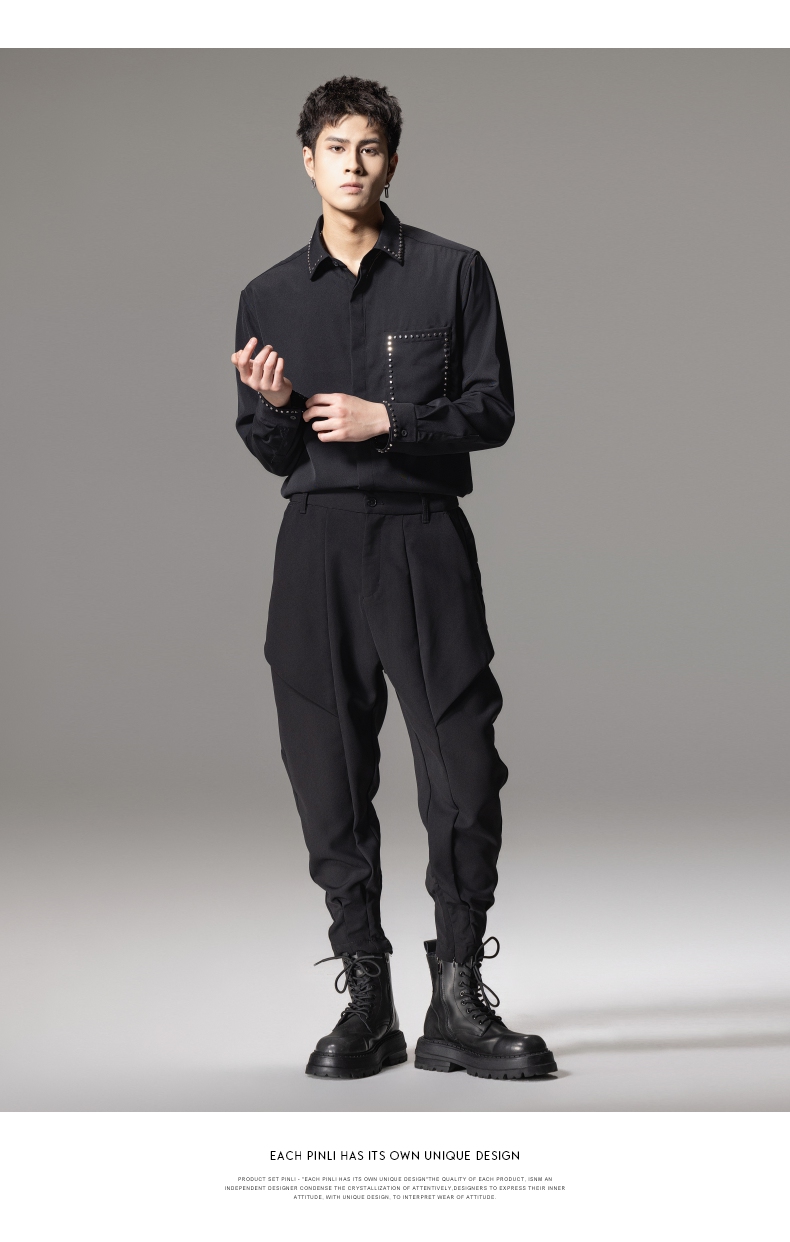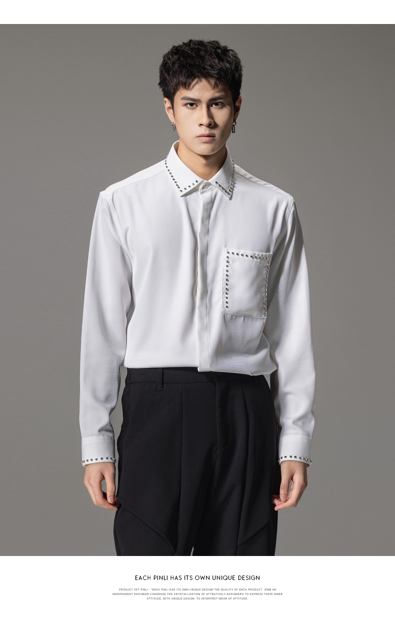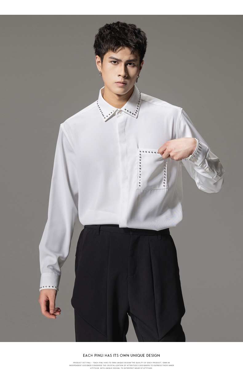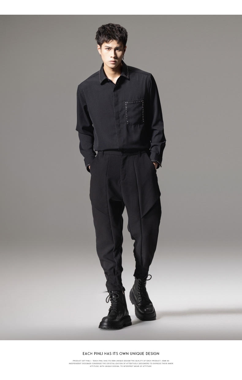 PINLI品立秋季新款男士宽松尖领休闲长袖衬衫衬衣GD241113003