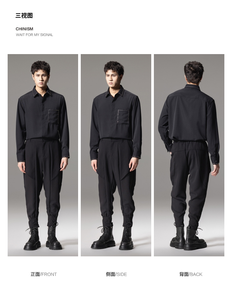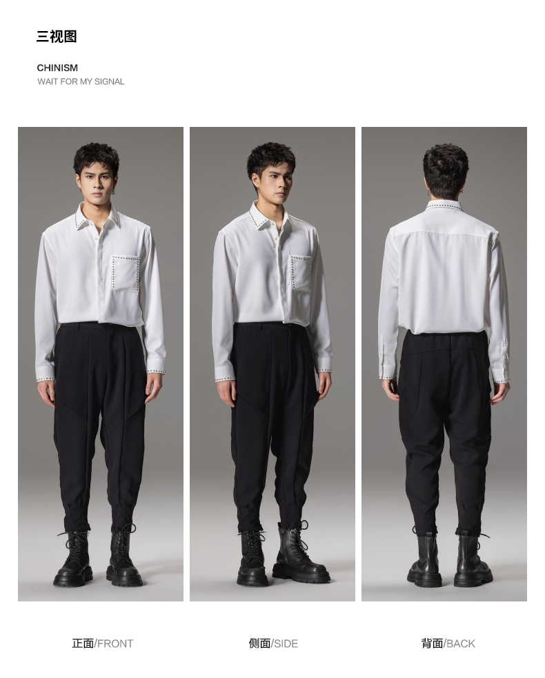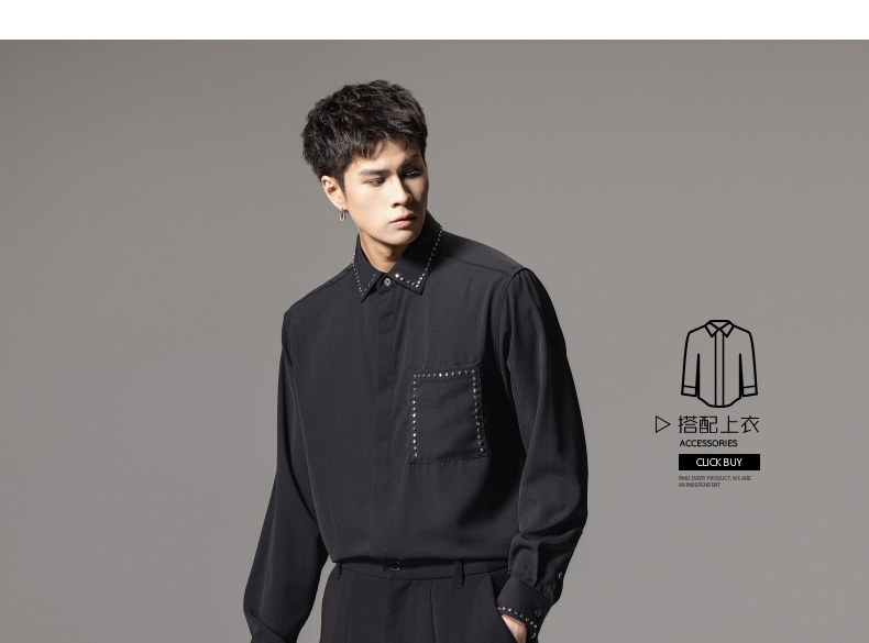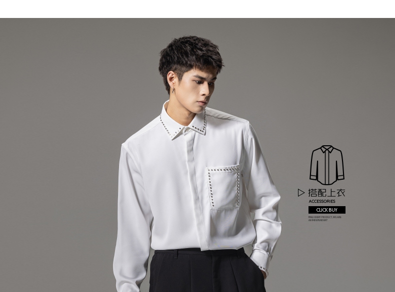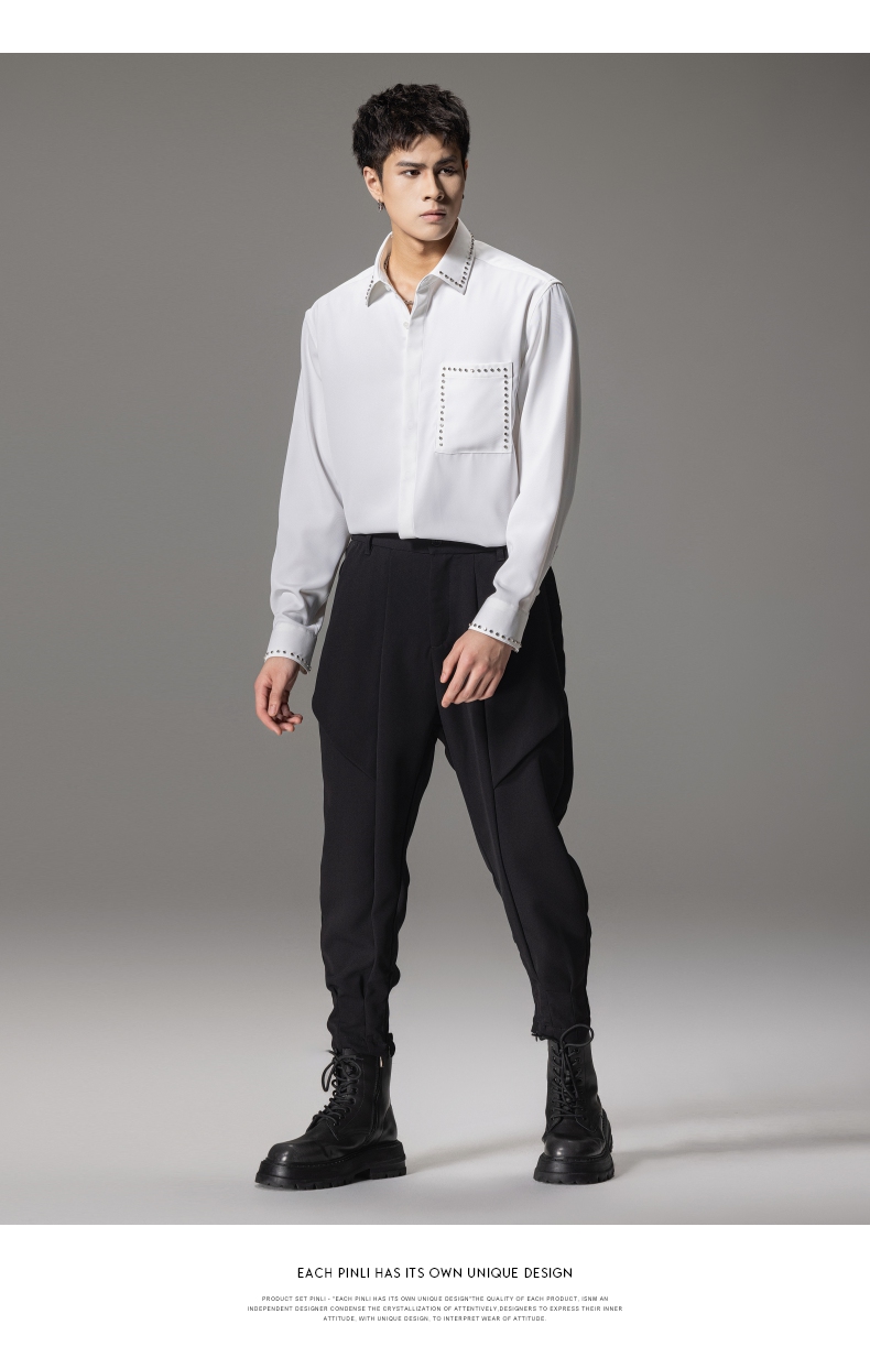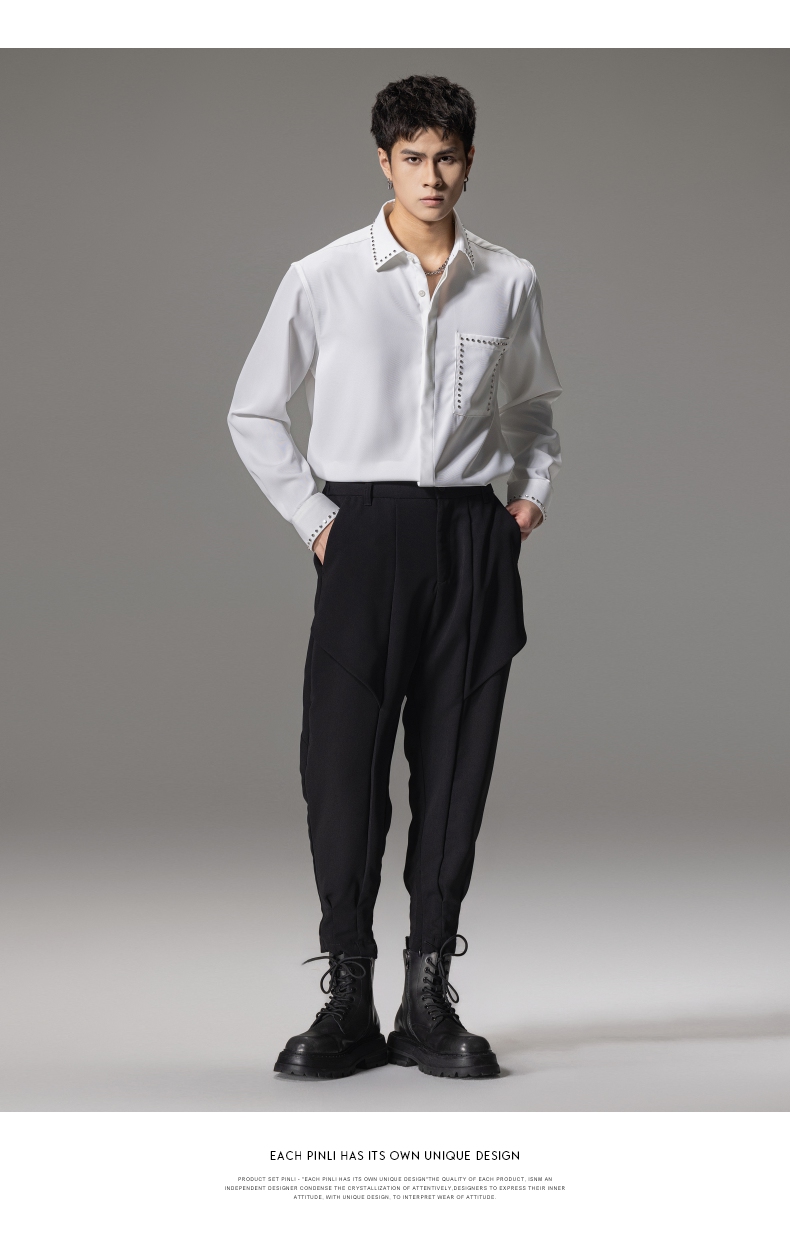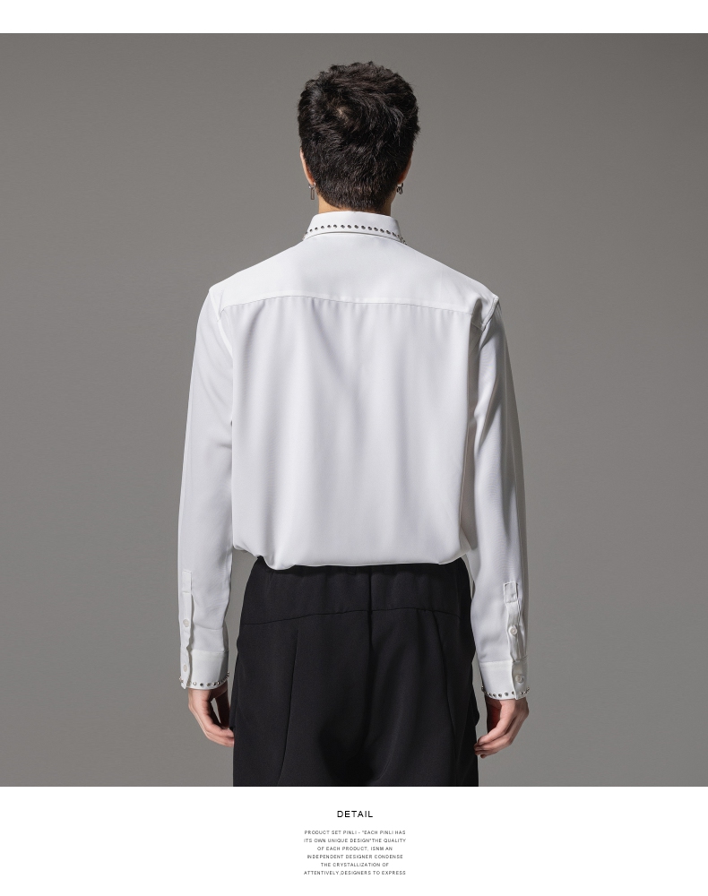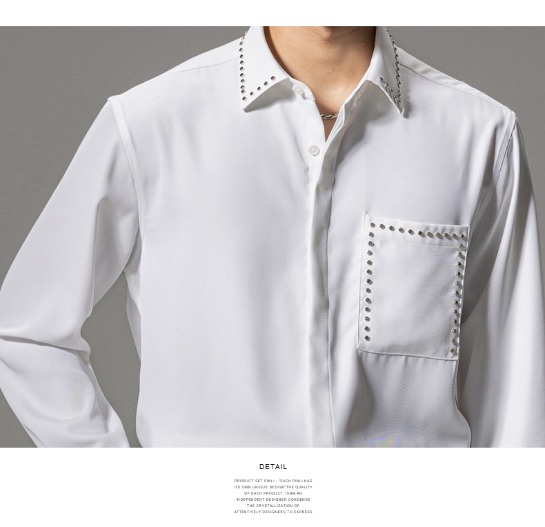 PINLI品立秋季新款男士宽松尖领休闲长袖衬衫衬衣GD241113003