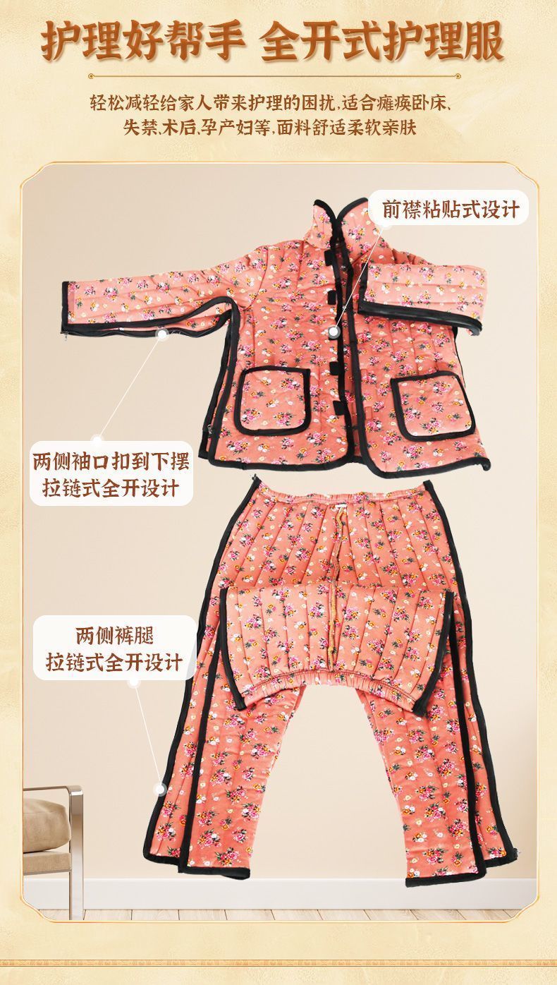 冬季驼绒加厚易穿脱护理服瘫痪卧床骨折失禁老人保暖病号服居家服
