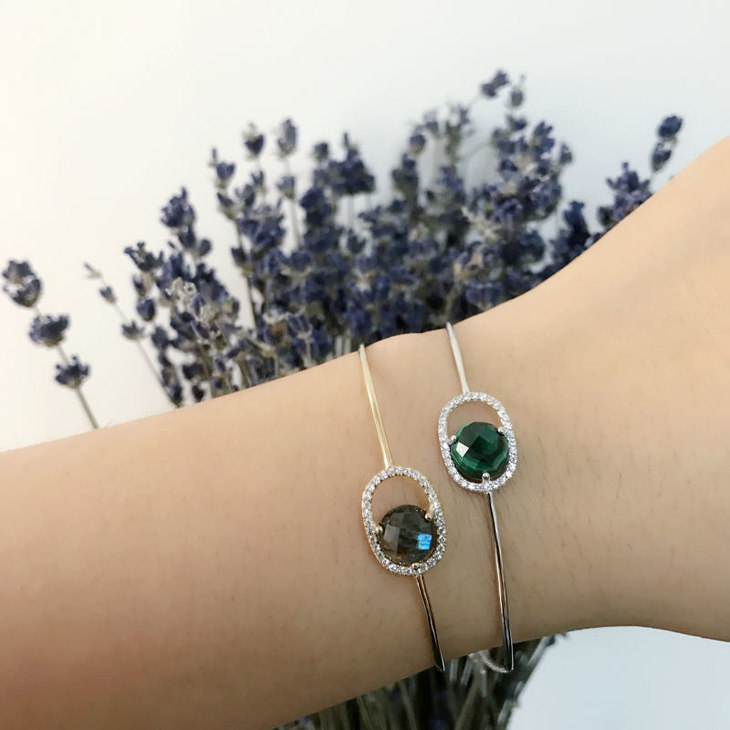 最细致的工艺和最用心的设计!手链一半弧线是固定的,另一半是链状的,最完美的让宝石始终为正面向上!
