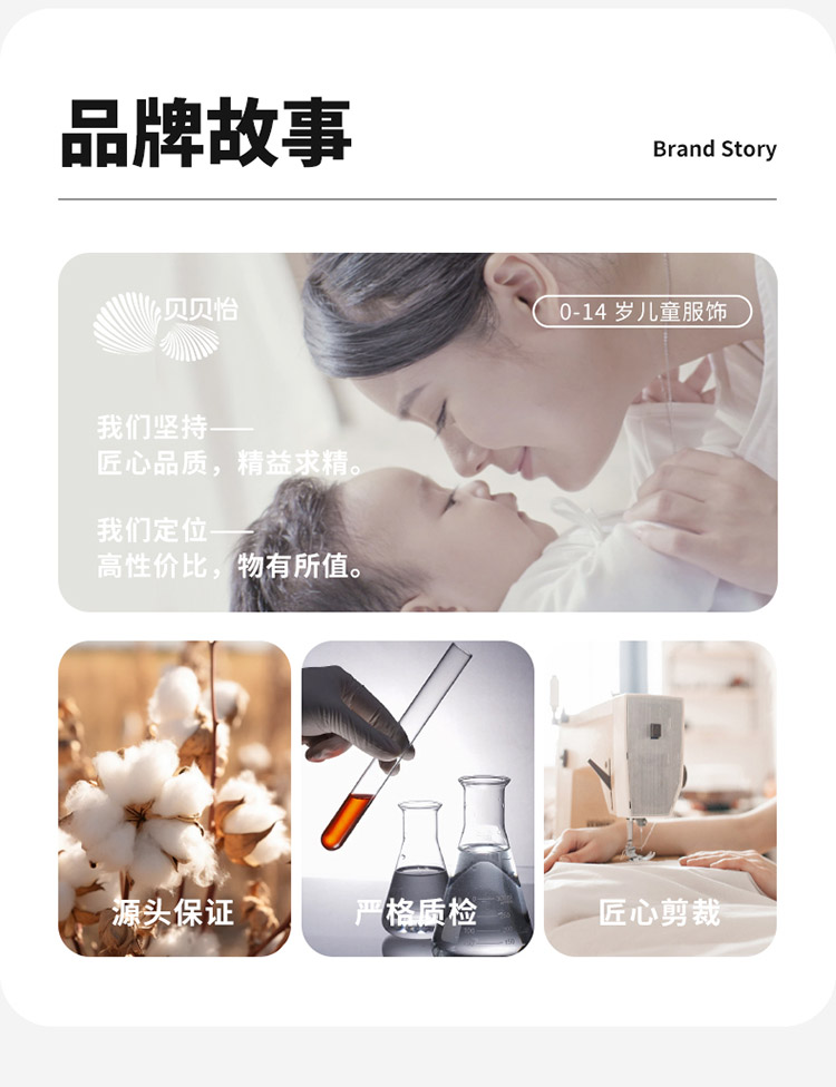 - 贝贝怡专注0-6岁婴幼儿服饰,坚持安全、柔软、舒适的产品理念,为千万中国家庭提供超高品质、安全可靠的婴幼儿服饰产品,妈妈放心,宝宝开心!