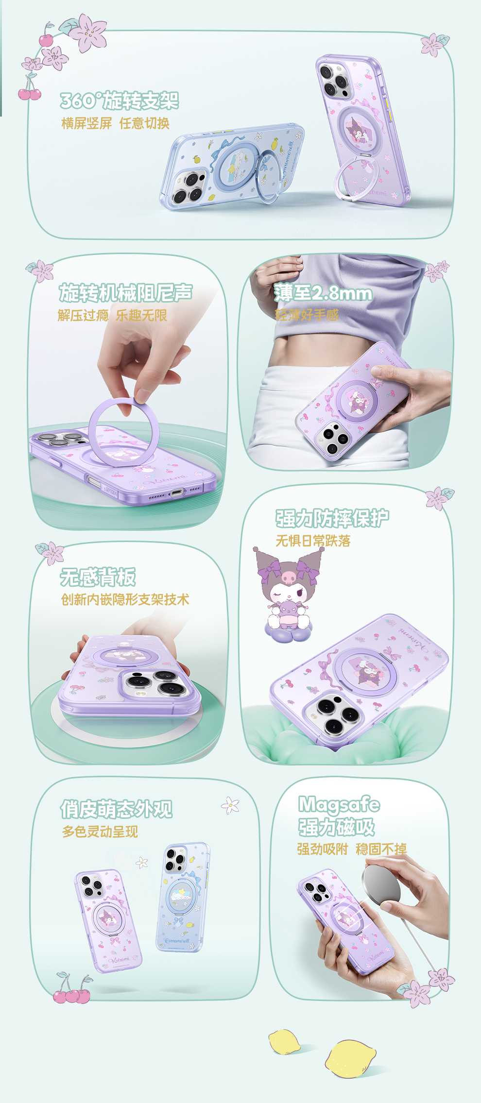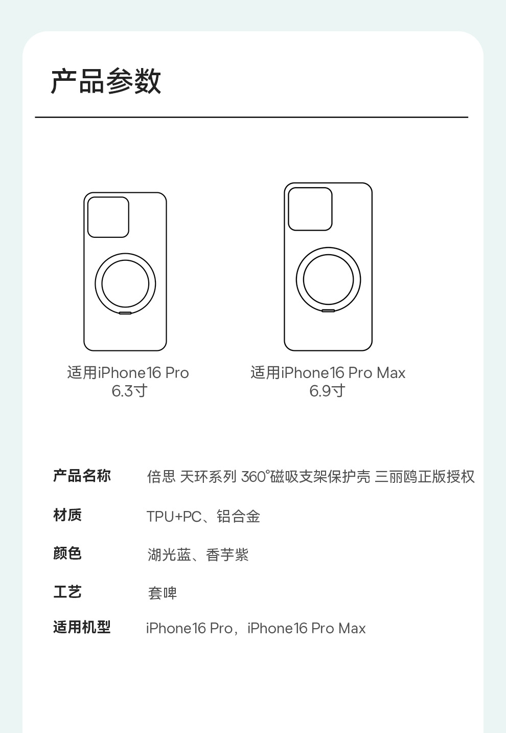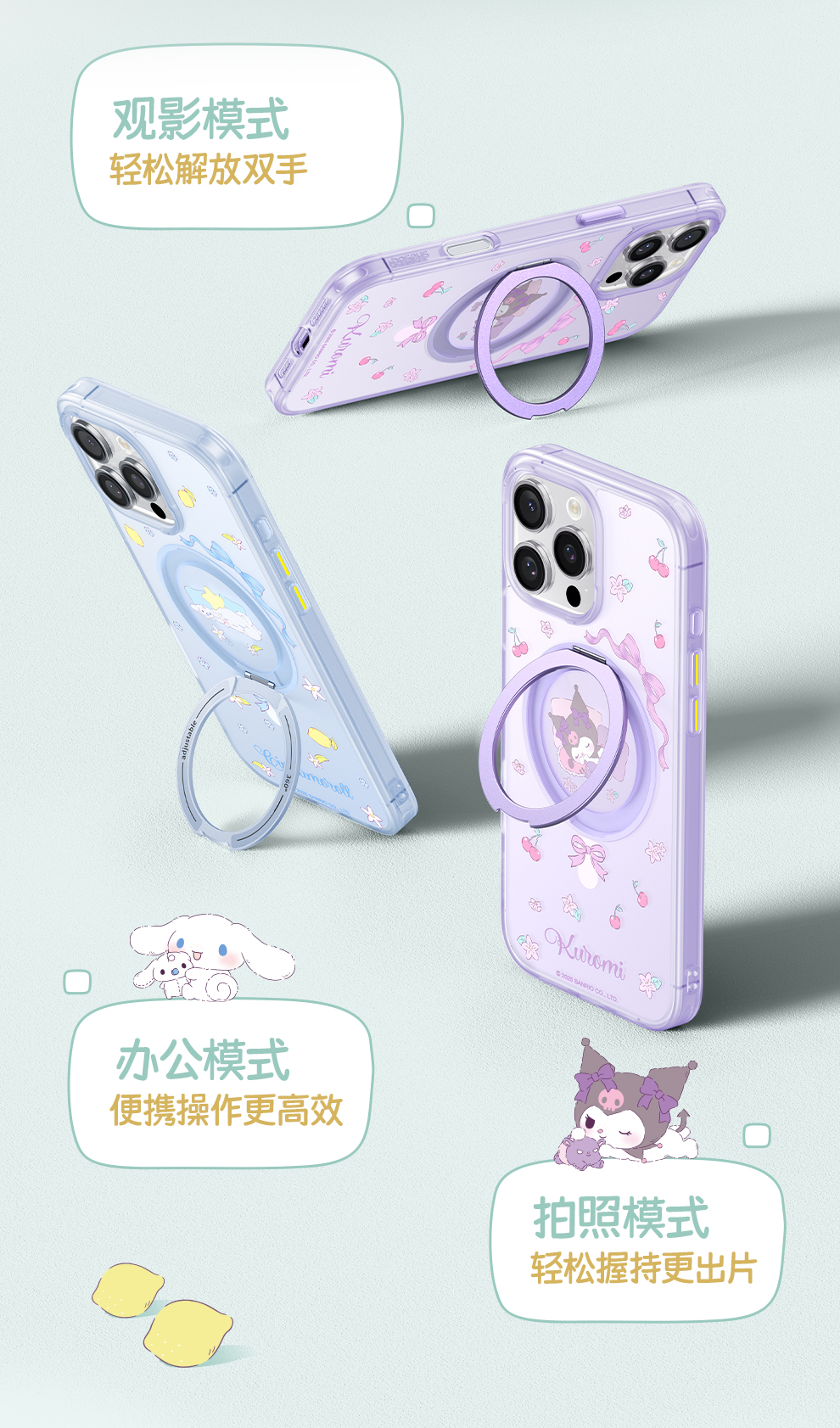倍思 天环系列 360°磁吸支架保护壳 For ip 16 Pro 三丽鸥正版授权