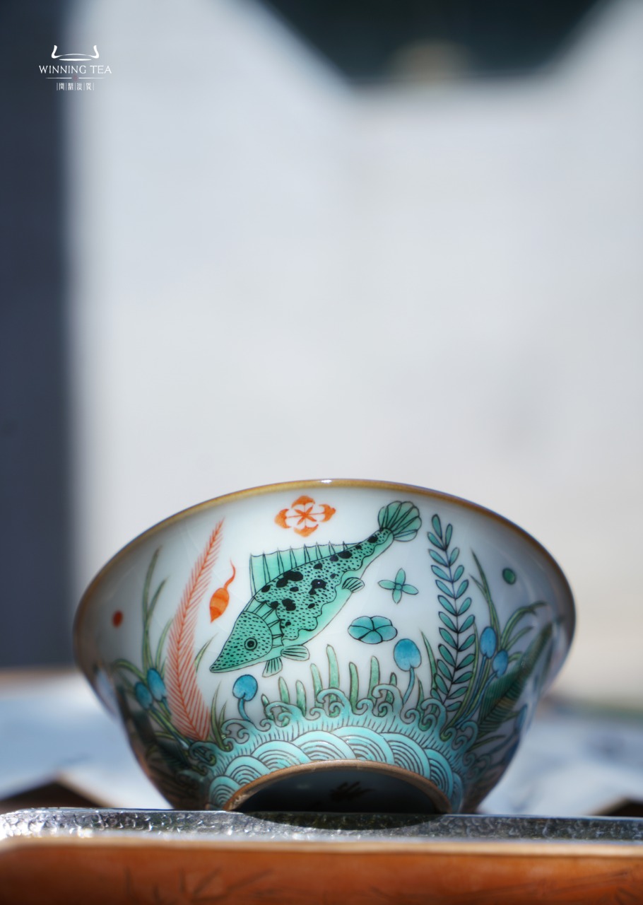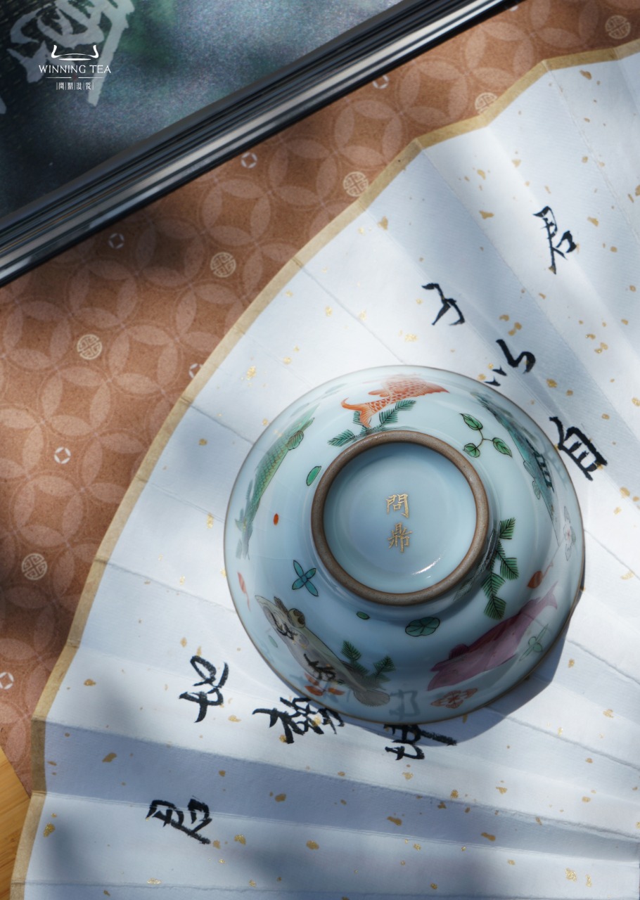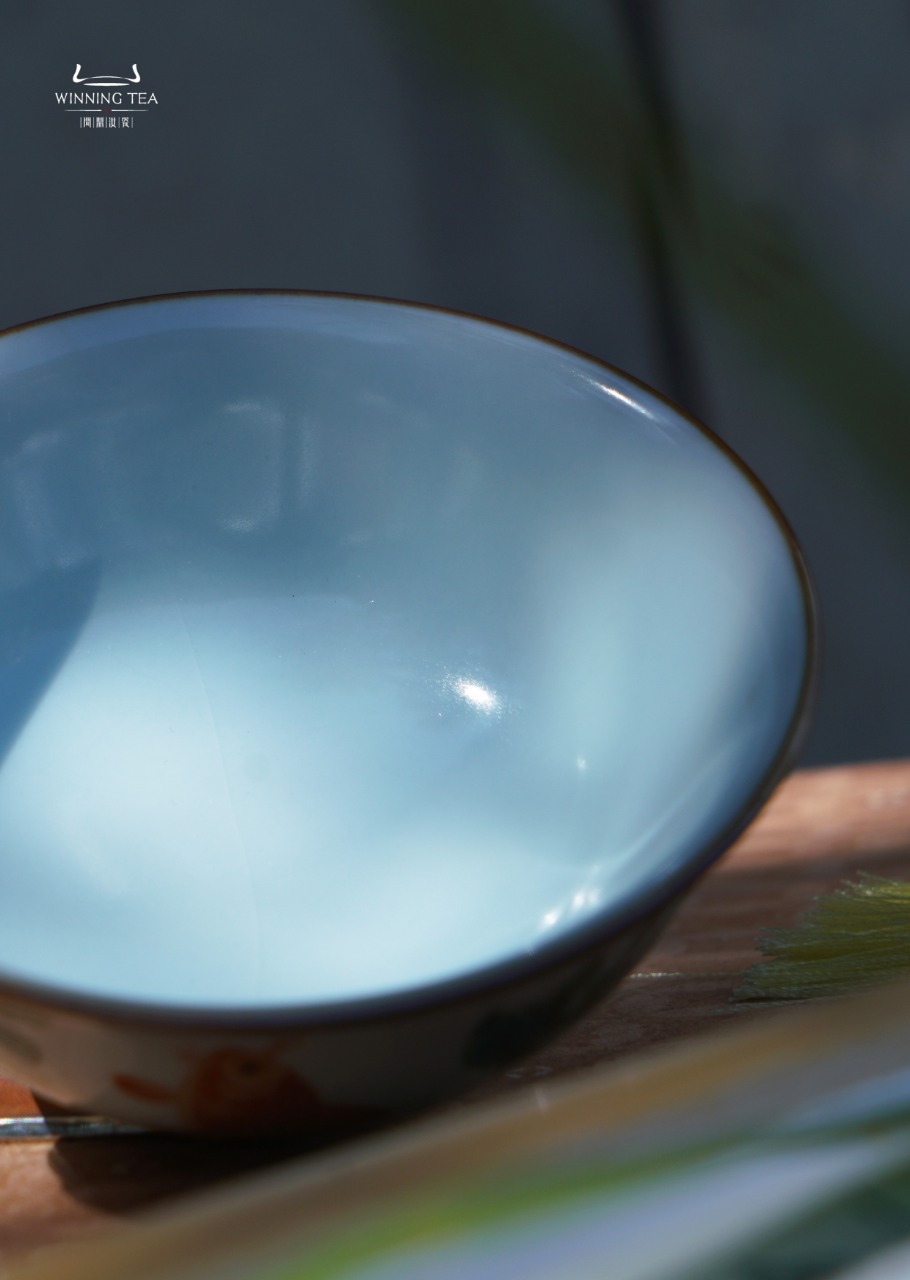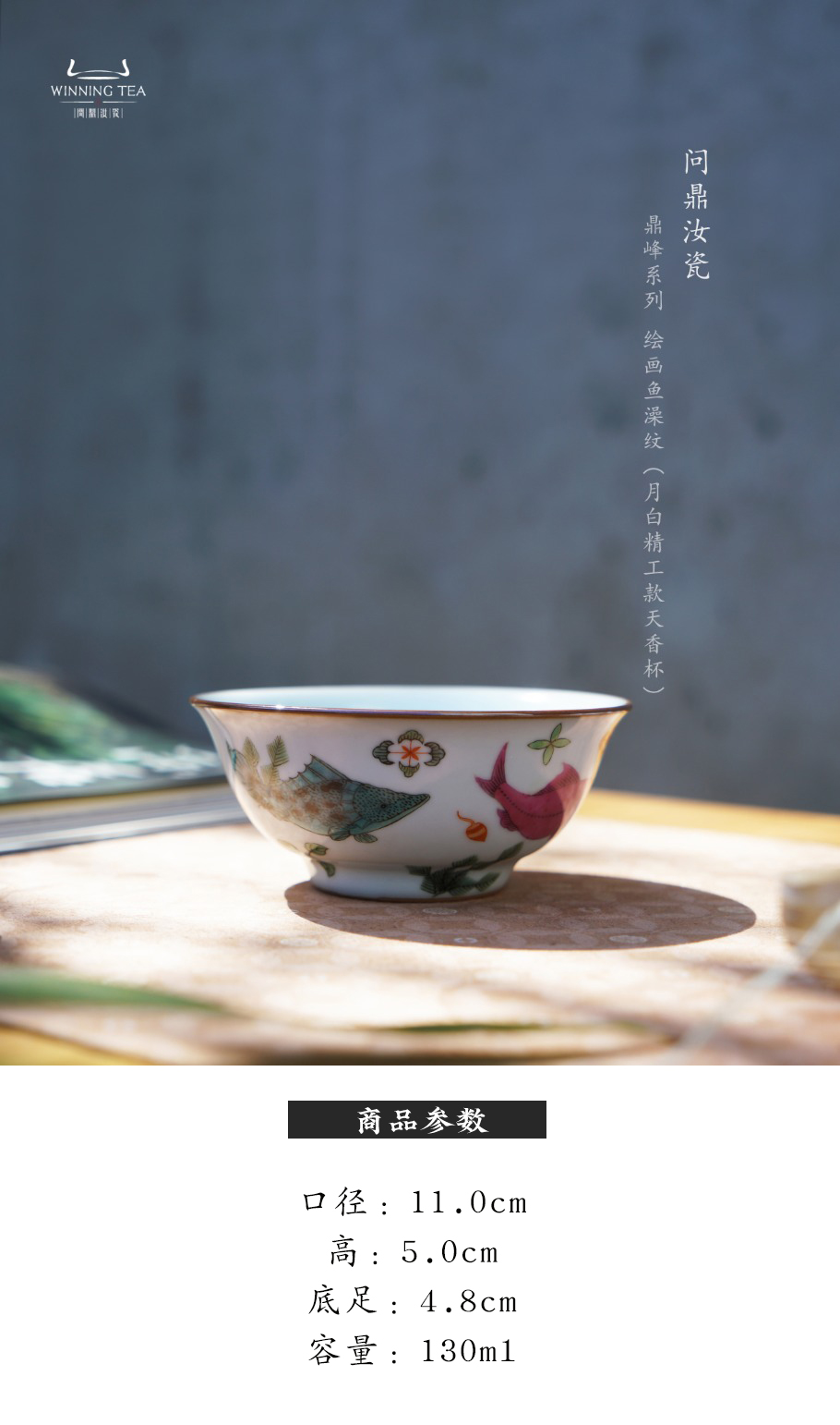 问鼎汝瓷鼎峰系列月白精工款天香杯(鱼澡纹)