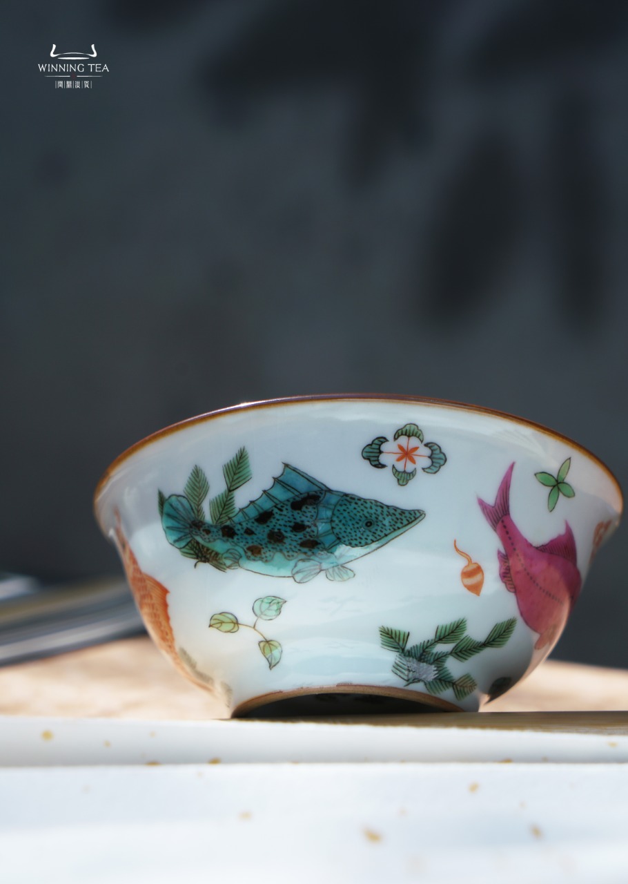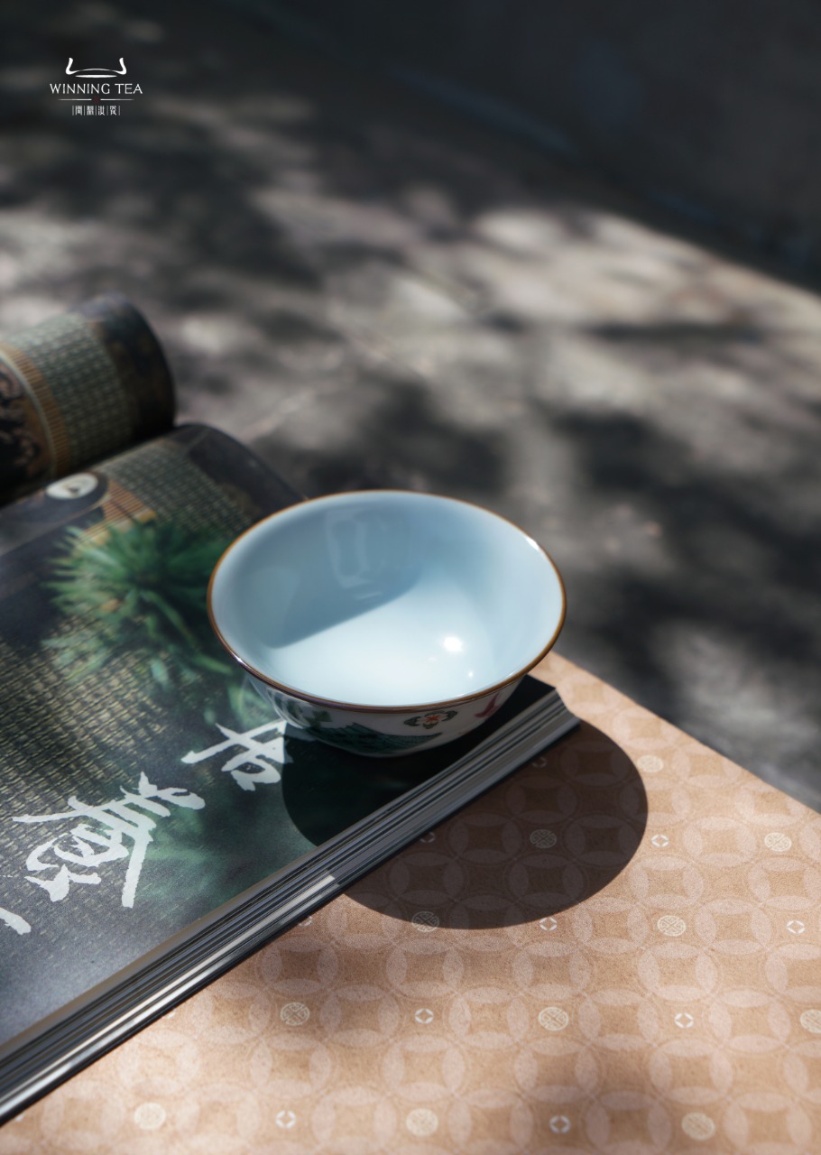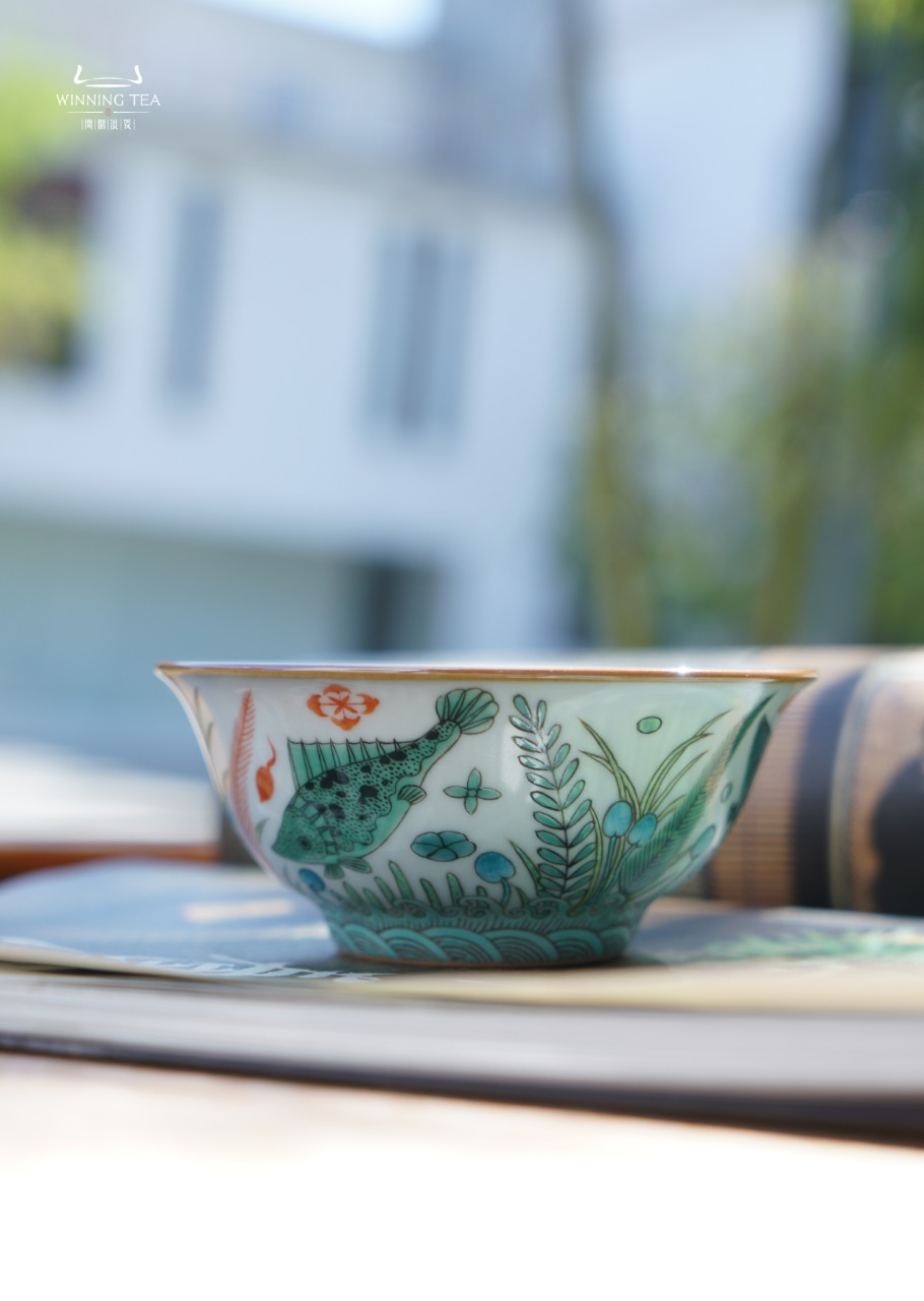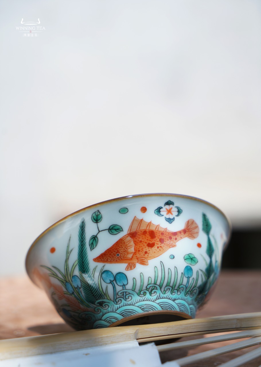 问鼎汝瓷鼎峰系列月白精工款天香杯(鱼澡纹)