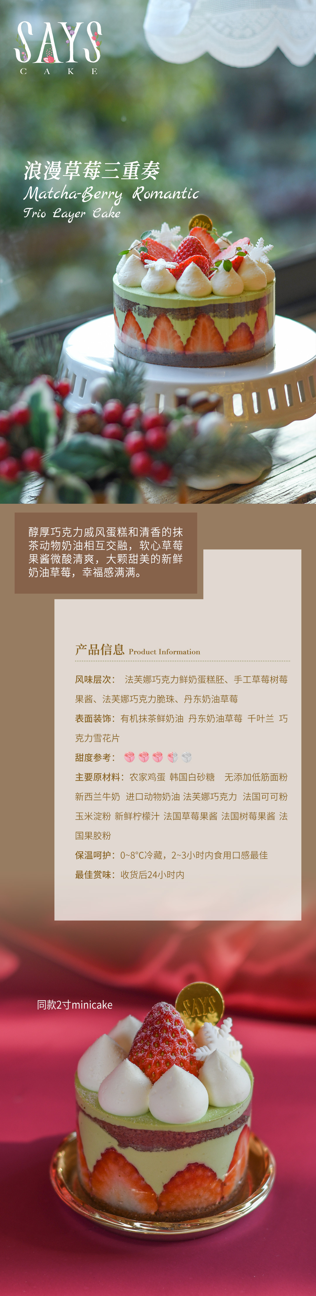 浪漫草莓三重奏Matcha-Berry Romantic Trio Layer Cake