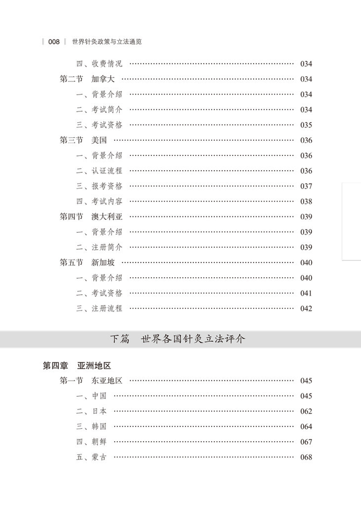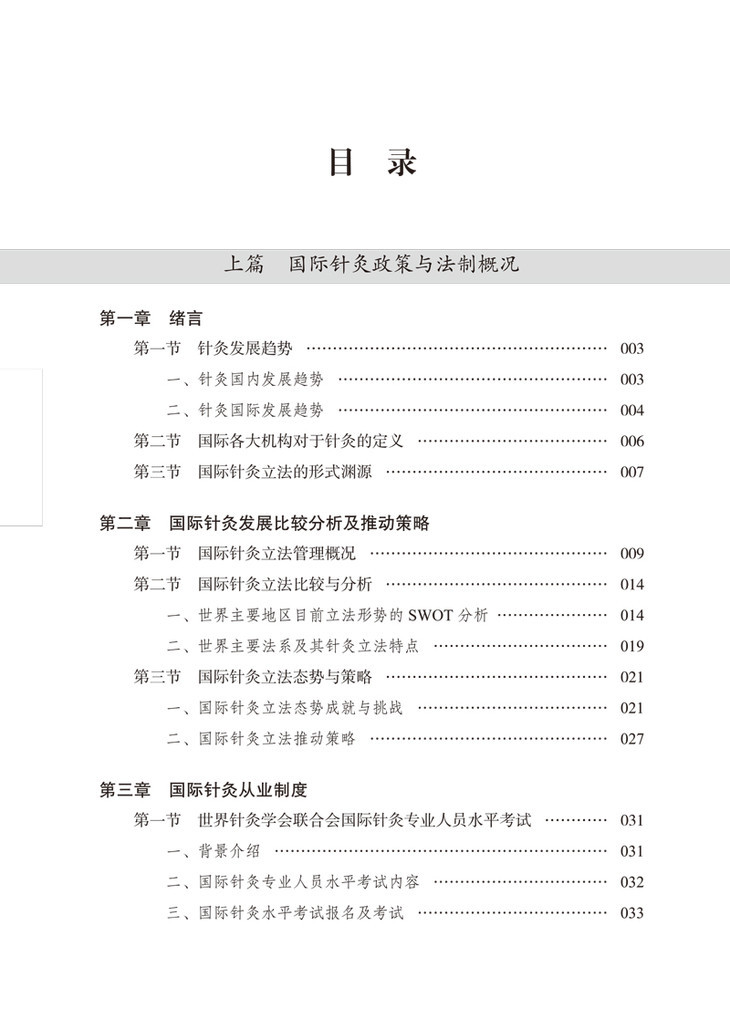 本书按地理位置分别论述了针灸在各国的发展现状及立法管理现状,全面系统整理了世界50余个主要国家和地区中医针灸的立法与管理现状,特别是对承认中医针灸合法地位,已经逐渐被纳入国际主流医疗体系的国家和地区做了重点分析。同时本书还对教育与培训、临床适应证、临床科研、各国家和地区中医针灸学会和相关机构对外交流情况等进行了系统梳理,分析了国际针灸医疗、科研文化、教育、管理政策法规、学术组织、学术期刊、学术地位以及理论体系等方面的发展趋势,概要总结了当今国际针灸发展存在的问题,并尝试地提出了应对策略。